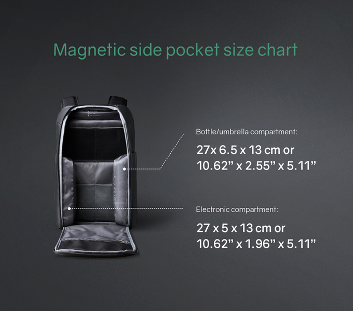 Складной рюкзак FlipPack комбинированный матового темно-зеленого и черного цветов. Размер рюкзака 47х30х17 см, объем 23 л, вес 1350 гр. Молнии рюкзака полностью расстегиваются, и его можно сложить в плоскую конструкцию размером 50х30х6,5 см. Рюкзак трехслойный: верхний слой - прочный водоотталкивающий полиэстер (искусственная кожа), слой вспененного материала и слой мягкой подкладочной ткани. Такая конструкция надежно защищает находящиеся внутри рюкзака предметы от воды, деформаций и других внешних воздействий. Детально продуманная организация отделений позволяет грамотно распределить вес. Самые тяжелые предметы располагаются ближе к спине, например, в отделении для ноутбука диагональю до 16” с дополнительным карманом размером 26х14 см для планшета диагональю до 11”. Благодаря плотным перегородкам ноутбук и планшет надежно фиксируются и не перемещаются при ходьбе. Отделение закрывается на водонепроницаемую молнию YKK, которую можно зафиксировать с помощью кодового замка TSA007 с функцией таможенного досмотра. Основное отделение 44х27 см с семью карманами для мелочей. На спинке 4 открытых кармана (2 - 11,5х13,5 см и 2 - 15,5х13,5 см) и один 15,5х19 см на молнии. На откидной передней части еще 2 кармана на молниях 12х15 см и 13х15,5 см. Отделение закрывается на водонепроницаемую молнию YKK. По бокам рюкзака расположены 2 водозащищенных easy access кармана с крышками на сильных магнитах. Один карман размером 27х13х6,5 см c дополнительной специальной водозащитой для термокружки, бутылки с водой или зонта. Второй карман размером 27х13х5 см для мелкой электроники с дополнительной регулируемой мягкой перегородкой на липучке. Вентилируемая мягкая спинка из специальной устойчивой к разрыву ткани с easy access карманом для телефона или портмоне 10х20,5 см с магнитной застежкой. Также на спинке находится специальная лямка для крепления рюкзака на выдвижную ручку чемодана, ручка, за которую при необходимости удобно нести рюкзак в руках, и трос, которым можно обхватить неподвижный предмет и затем фиксировать бегунком молнии в кодовом замке. Трос выдерживает нагрузку до 50 кг. Широкие мягкие лямки рюкзака из дышащей ткани с удобной новой системой регулировки и фиксации пряжек в купе с поперечным ремнем на магнитной пряжке и анатомической конструкцией рюкзака перераспределяют часть нагрузки с плечей и спины на талию и бедра, в результате чего вес рюкзака воспринимается на 20-25% легче, чем при использовании стандартных моделей. Дополнительно на лямках расположен easy access карман с RFID-защитой для кредитной карточки и петельки, за которые можно прицепить очки или проводные наушники.