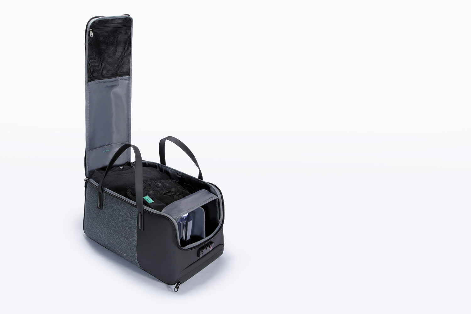 Дорожная сумка-трансформер FlexPack Go со съемным плечевым ремнем и прочными резиновыми ручками, обладатель премий Governor Cup Industrial Design Excellence Award, Upstyle Award 2018. Сделана из прочного устойчивого к порезам и трению водоотталкивающего многослойного полиэстера, не требующего специального ухода. Размер сумки 53х23 см, высота 26 см. Удобным дополнением служит возможность зарядки смартфона, для этого из внутреннего кармана на молнии 13х18 см для powerbank выведен USB-кабель, который соединен с портом на внешней стороне сумки. Внутри сумки есть 2 кармана 17х18 см, один 13х16,5 см и еще карман на клапане сумки 16,5х18,5 см. Дополнительно в сумке предусмотрены эластичные фиксаторы для одежды или других вещей с удобными креплениями в различных положениях. В комплект входят укладка на молнии для футболок и других мелких предметов одежды 20х18х11 см и укладка 23,5х19х8,5 см, которую можно зафиксировать на липучке внутри сумки, тем самым превратив ее в easy acsess карман, который можно разделить на 2 отделения откидывающейся перегородкой. Застежки молнии сумки блокируются на кодовый замок TSA007 с функцией таможенного досмотра. Особенностью сумки является возможность трансформации в плоскую укладку, которую легко хранить и брать с собой. Сумка оснащена стальным тросом, которым можно обхватить неподвижный предмет и затем зафиксировать бегунком молнии в кодовом замке. Дополнительно на боку сумки есть открытый карман 15х20 см с молнией на его дне, которая позволяет превратить карман в лямку для фиксации сумки на ручке чемодана. Вес сумки 1030 гр, объем 30 л. Сумка упакована в черную подарочную коробку размером 35х25х11 см.