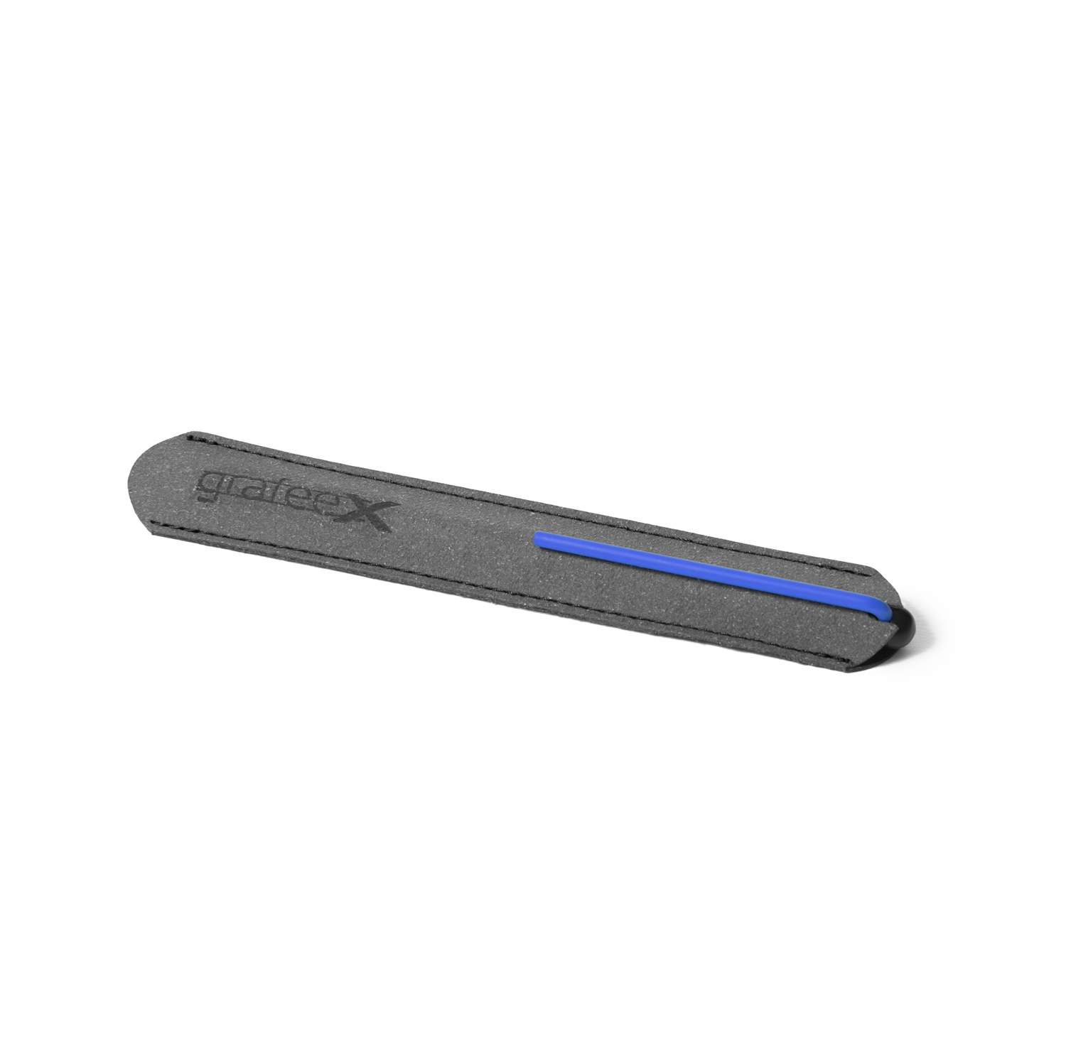 Шариковая ручка с цельным алюминиевым матовым корпусом черного цвета и ярко-синим клипом. Дизайн ручки такой же, как и у инновационного карандаша GrafeeX.В ручке используется шариковый стержень CROSS® 8513, который выдвигается с помощью поворотного механизма. Ручка вкладывается в элегантный темно-серый чехол с серой прострочкой, сшитый вручную из рециклированной кожи.
