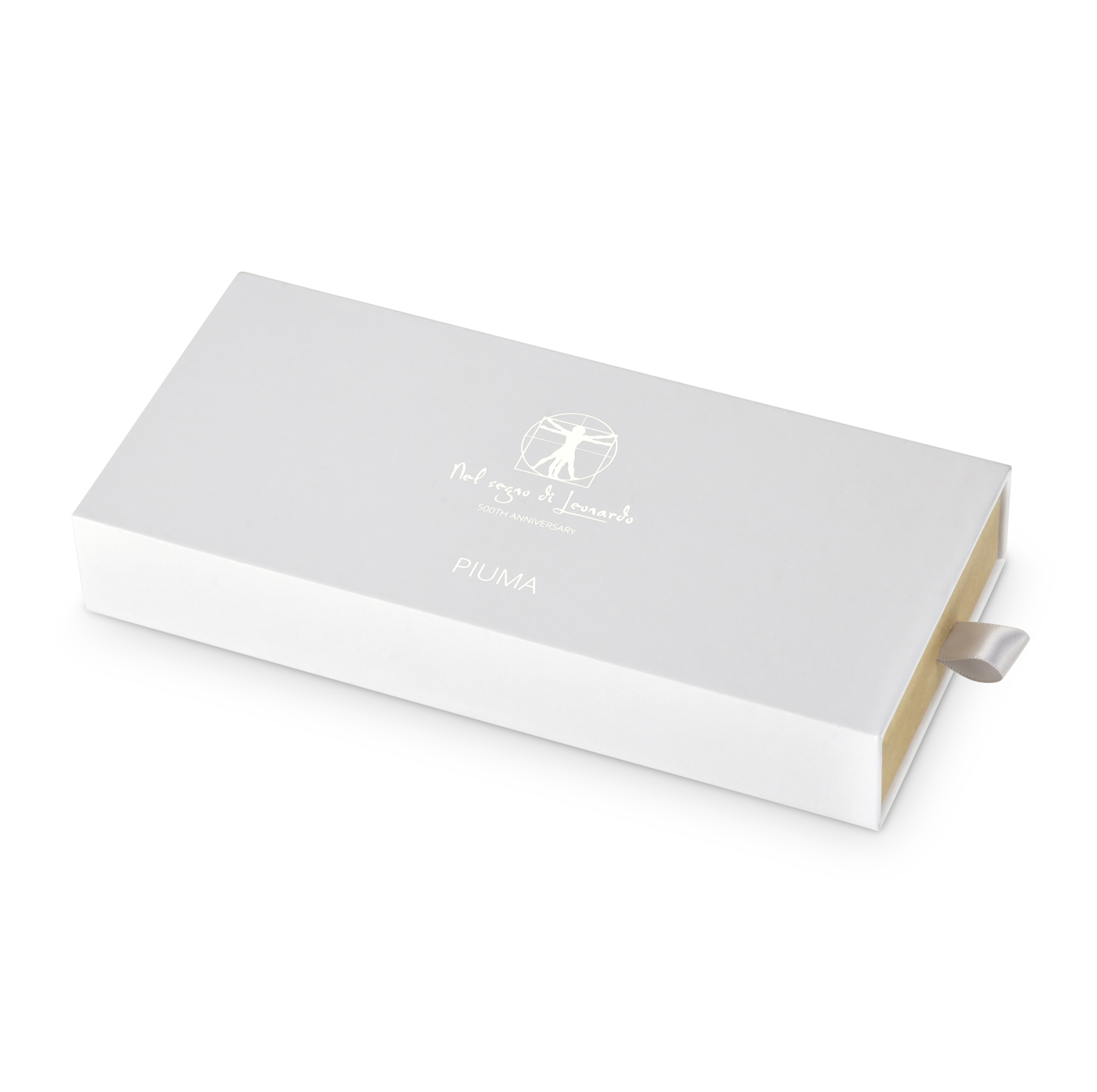 Pininfarina PIUMA - вечная ручка динамической формы в виде гусиного пера сделана в память Кодекса о полете птиц Леонардо да Винчи, целью которого было понять тайну полета и который хранится сейчас в Королевской библиотеке Турина. Ручка полностью сделана из дерева клена и весит всего 7 гр при длине 15,5 см. На ее корпусе выгравирован зеркальный автограф Мастера, который отражается в отполированной стальной настольной подставке для ручки. Вечная ручка имеет необычный пишуший узел в виде наконечника Ethergraf, который изготовлен из сплава металлов по запатентованной технологии. Он не содержит свинец и алюминий, производится вручную итальянскими мастерами и практически не расходуется за десятилетия использования. При соприкосновении с поверхностью бумаги, происходит химическая реакция и наконечник оставляет серебристый след, который напоминает цвет графитового карандаша, но обладает большей стойкостью. Идеально пишет на каменной бумаге. Набор упакован в белую подарочную коробку размером 215х100х30 мм.