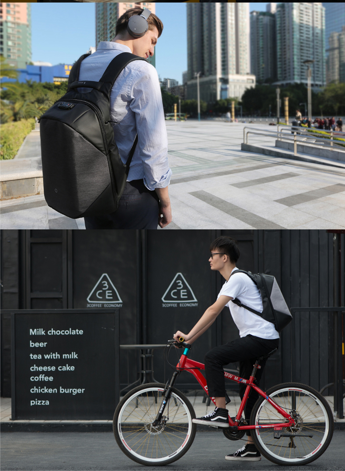 Вместительный рюкзак для путешественников ClickPack из комбинации темно-серого и черного цветов, обладатель премий Good Design Award 2017, Red Dot Design Award 2018, iF Design Award 2018, International Design Excellence Award. Размер рюкзака 46х34х16 см, объем 17,3 л, вес 1040 гр. Сделан из прочного устойчивого к трению водоотталкивающего многослойного полиэстера, с двухслойной защитой от дождя и не требующего специального ухода. Конструкция достаточно жесткая, не деформируется. Детально продуманная организация отделений позволяет грамотно распределить вес. Самые тяжелые предметы располагаются ближе к спине, например, в отделении размером 35х27,5х3 см для ноутбука диагональю до 15,6” и в кармане размером 13,5х25 см для планшета диагональю до 10”. Благодаря плотным перегородкам и эластичным фиксаторам ноутбук и планшет надежно фиксируются и не перемещаются при ходьбе. Специальная анатомическая конструкция и вентилируемая мягкая спинка снижают нагрузку на плечи и спину, вес рюкзака воспринимается на 20-25% легче, чем при использовании стандартных моделей рюкзаков. Конструкция рюкзака позволяет раскрыть его на 180°, чтобы аккуратно уложить в рюкзак много различных предметов. Дополнительно в основном отделении расположены еще 8 карманов различного функционала. 6 открытых карманов под ручки и различные мелочи, 1 карман на молнии размером 9х16 см и карман на липучке для powerbank, в который приходит USB-кабель системы зарядки K EasyCharging, соединенный с USB-портом в борту на внешней стороне рюкзака для легкого подключения к смартфону. Рюкзак закрывается на двойную укрепленную молнию YKK, которую можно зафиксировать с помощью кодового замка TSA007 с функцией таможенного досмотра. Широкие и прочные лямки крепятся к небольшому тканевому борту, что позволяет рюкзаку как бы обхватывать вашу спину. В одном из бортов расположен USB-порт, а в другом - чехол для зонта или бутылки с водой, который при использовании фиксируется специальным креплением. На правой лямке рюкзака находится easy access карман размером 12х6 см на молнии, на левой - открытый карман 10х5 см. На внешней стороне рюкзака в стыке серого и черного цветов спрятался треугольный карман на молнии размером 16х9 см с застежкой фастекс для ключей, которая позволяет вам легко отстегнуть/пристегнуть ключи. На спинке рюкзака расположен внешний потайной карман размером 16х28 см на молнии. Для его защиты достаточно того, что он вплотную прилегает к вашей спине и вытащить что-то из него без снятия рюкзака невозможно. В дополнение к вышеперечисленным средствам защиты рюкзак ClickPack оснащен стальным тросом, которым можно обхватить неподвижный предмет и затем зафиксировать в кодовом замке. Сверху расположена ручка, за которую при необходимости удобно нести рюкзак в руках или закрепить на выдвижной ручке чемодана. На углах рюкзака размещены светоотражающие элементы, которые в темное время суток равномерно отсвечивают практически на 360° и делают вас заметными на расстоянии до 100 метров.