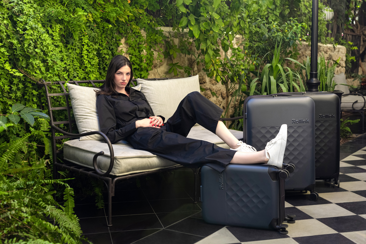 Чемодан складной Rollink Vega 360 55x40x20 см, 4 колеса, серо-синий