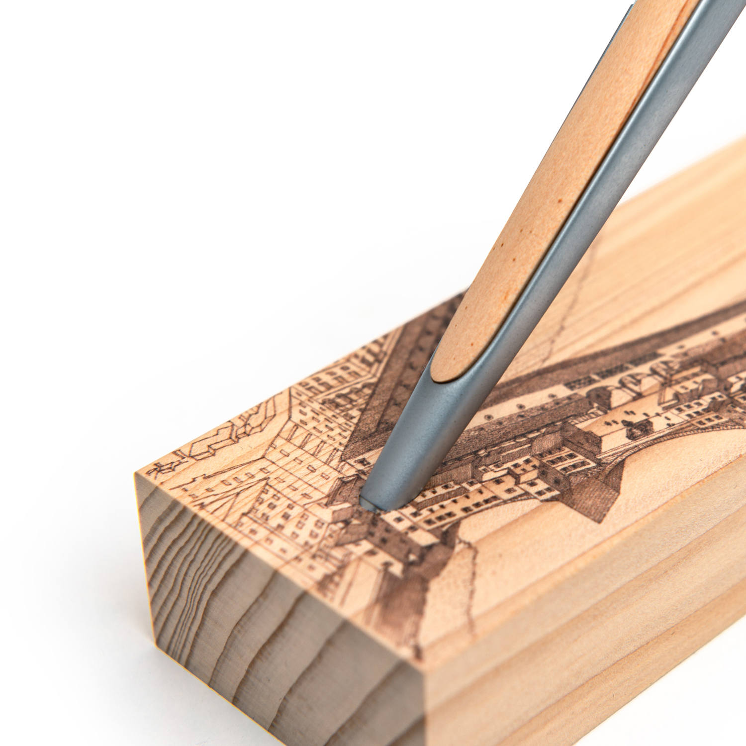 Вечная ручка Pininfarina Cambiano Флоренция из лимитированной коллекции дизайнеров Pininfarina в сотрудничестве с Francesco Corni Foundation, посвященной красоте Италии и представленной 8 городами. Франческо Корни - выдающийся дизайнер из Модены, посвятивший свою жизнь популяризации истории и архитектуры. Используя трехмерное перспективное видение, он изучает наиболее значимые здания каждого города, выбирает наилучшую точку обзора, чтобы подчеркнуть их особенности, и прорисовывает детали в древней технике калиграфии. Дополняет видение мастера умелое использование цветов, по одному для каждого города. Для Флоренции дизайнер выбрал центром композиции Corridoio Vasariano, идущий от Palazzo Vecchio до Palazzo Pitti, и фиолетовый цвет, в результате подарочная коробка и деревянная подставка для ручки из массива кедра становятся единым произведением искусства. Ручка упаковывается в деревянную коробку, являющуюся одновременно настольной подставкой для этой вечной ручки Cambiano с необычным пишущим узлом в виде наконечника Ethergraf®, изготовленного из сплава металлов по запатентованной технологии. Он не содержит свинец и алюминий, производится вручную итальянскими мастерами и практически не расходуется за десятилетия использования. При соприкосновении с поверхностью бумаги, происходит химическая реакция и наконечник оставляет серебристый след, который напоминает цвет графитового карандаша, но обладает большей стойкостью. Идеально пишет на каменной бумаге. Корпус ручки выполнен из алюминия с вставками из дерева кедра. Вес ручки 39 гр, длина 16 см. Набор упакован в белую подарочную коробку размером 245х174х42 мм.