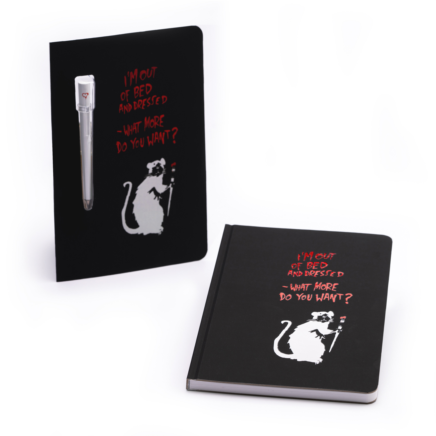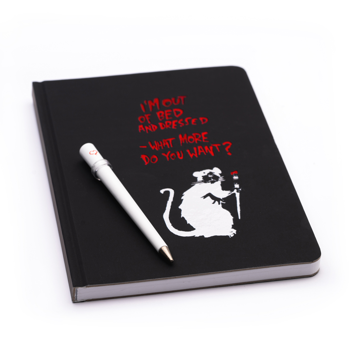 Набор Pininfarina Banksy Крыса: вечная ручка Primina и блокнот линованный из каменной бумаги, А5