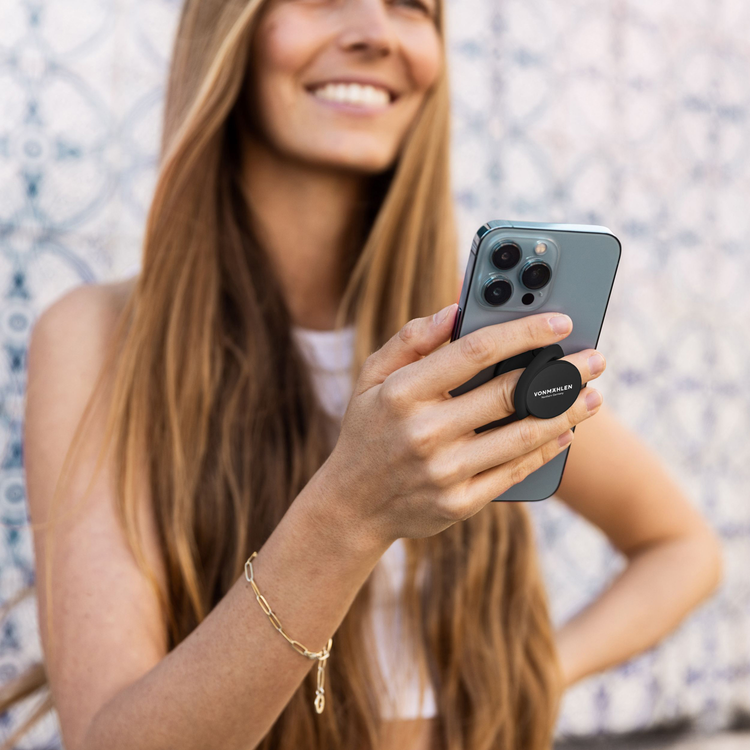 VONMAHLEN Backflip® Lite — ультратонкий держатель для телефона, который помогает комфортно пользоваться смартфоном даже на ходу. Он вращается на 360°, поэтому подходит как левшам, так и правшам. Благодаря встроенной функции подставки вы можете смотреть свои любимые сериалы в любое время и в любом месте. Чтобы зарядить смартфон без проводов, Backflip® Lite можно легко снять.