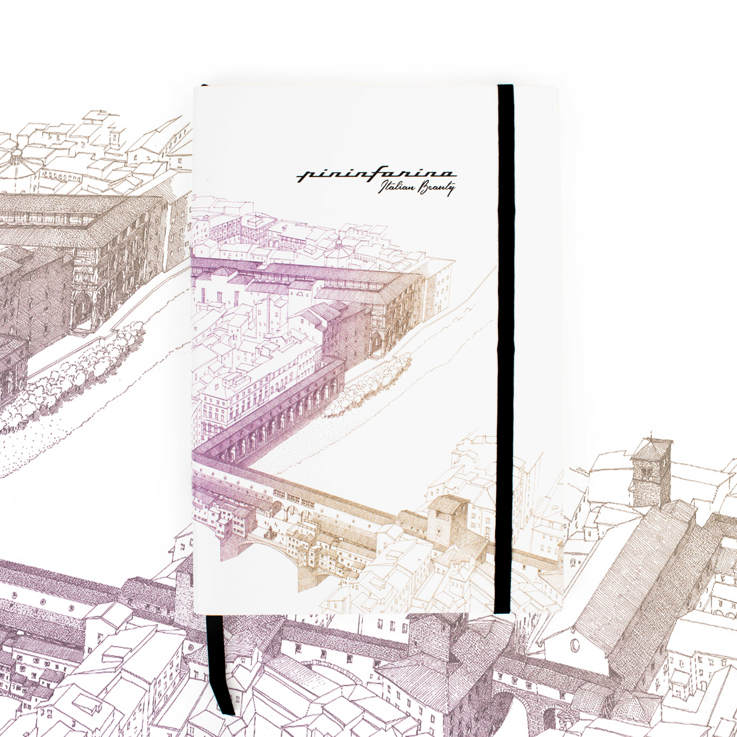 Тетрадь с листами из каменной бумаги Флоренция из специальной коллекции Italian Beauty дизайнеров Pininfarina в сотрудничестве с Francesco Corni Foundation, посвященной красоте Италии. Франческо Корни - выдающийся дизайнер из Модены, посвятивший свою жизнь популяризации истории и архитектуры. Используя трехмерное перспективное видение, он изучает наиболее значимые здания каждого города, выбирает наилучшую точку обзора, чтобы подчеркнуть их особенности, и прорисовывает детали в древней технике калиграфии. Для Флоренции дизайнер выбрал центром композиции Corridoio Vasariano, идущий от Palazzo Vecchio до Palazzo Pitti, и фиолетовый цвет. Белая мягкая обложка фиксируется черной резинкой. Тетрадь размером А5 (14х21 см) содержит 64 листа в линейку. Листы сделаны из каменной бумаги, экологической альтернативы обычной целлюлозной бумаге, которая не требует вырубки деревьев, использования воды и агрессивных химических веществ, тем самым защищая окружающую среду. Она состоит из 80% камня (карбоната кальция) и на 20% из связующего его нетоксичного полиэтилена высокой плотности (HDPE). Это бумага нового поколения с уникальными характеристиками. Каменная бумага на 100% водоотталкивающая, ее можно мыть. Жидкости, включая масло, не изменяют ее структуру, поскольку она не содержит древесных волокон, которые поглощают жидкости, в следствие чего традиционная бумага покрывается пятнами, деформируется и разрушается. Каменная бумага устойчива к разрыву, что также способствует ее долговечности. Она имеет приятный бархатистый эффект и не отражает свет. Плотность бумаги 140 гр/м2. Ляссе черного цвета. Сделана в Италии.