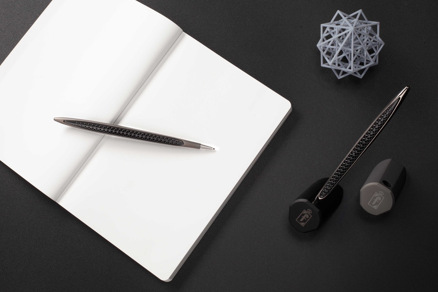Культовая ручка Pininfarina Cambiano приобретает новый облик благодаря наклонной подставке, напоминающей скульптуру. Ее динамичная форма, кажется, бросает вызов силе тяжести, создавая эффектное сценическое положение благодаря игре с равновесием. Черный блестящий корпус ручки также выглядит по-новому: на вставках нанесена 3D-печать из расплавленного нейлонового порошка, создающая трехмерный гибкий объект. Перфорированная текстура напоминает архитектурный контекст и является “фишкой” всей коллекции Transition.Корпус ручки выполнен из алюминия. Вес ручки 39 гр, длина 16 см, диаметр 1 см. В ручке используется шариковый стержень CROSS® 8513 M с синей пастой. Подставка черная матовая из анодированного алюминия. Набор упакован в большую подарочную коробку.
