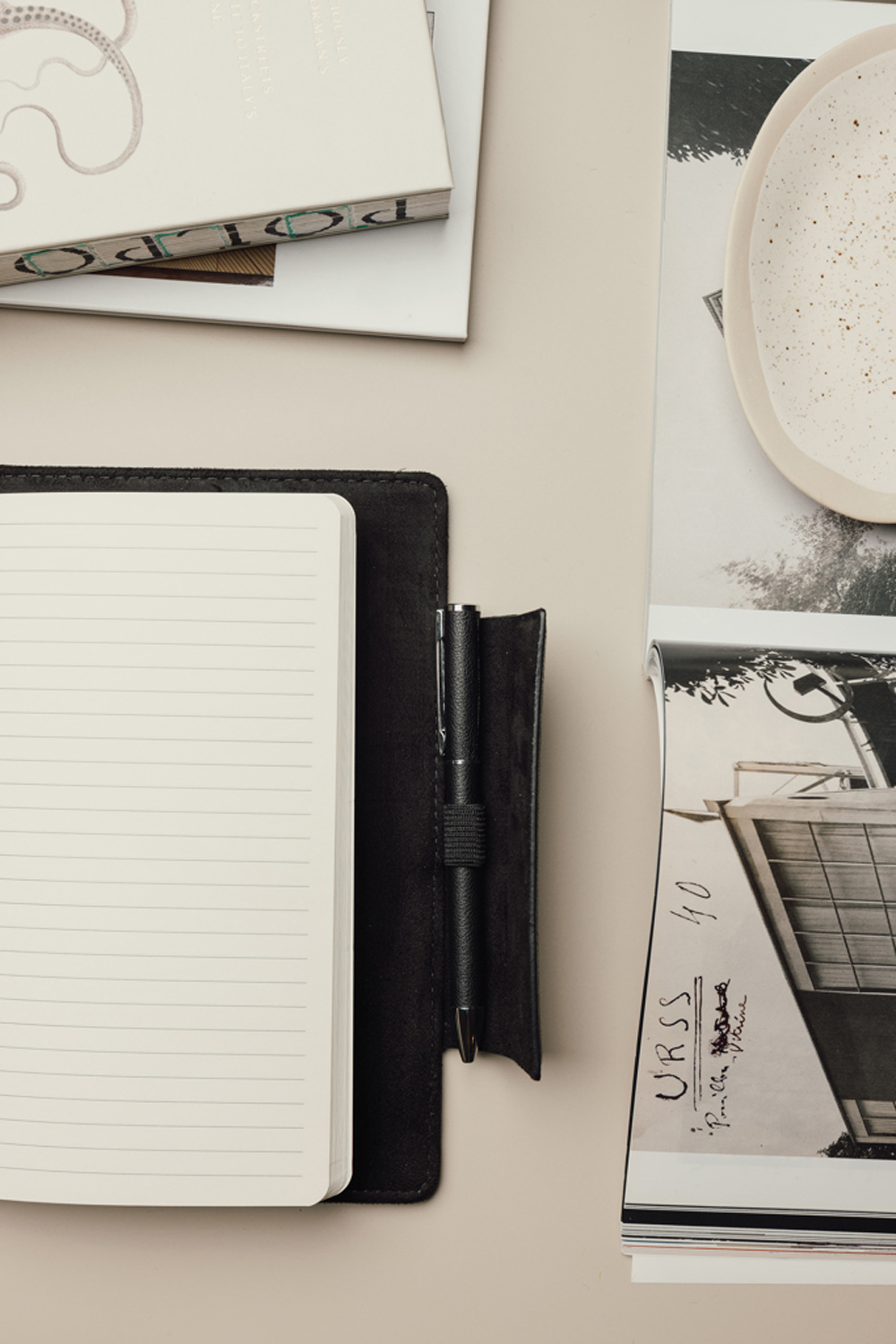Стильный блокнот формата А5, состоящий из 160 линованных страниц (80 листов). Это идеальный аксессуар для деловых встреч, который не только поможет записать все важные мысли, но и произведет впечатление на окружающих. Классический дизайн встречается с технологичными переработанными материалами: экокожей, полиуретаном и бумагой. Надежно закрывается при помощи магнитной застежки.