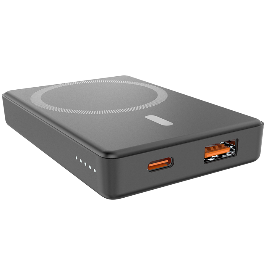Магнтиный внешний аккумулятор Magnetic с беспроводной зарядкой (5W), 5000 Mah, черный