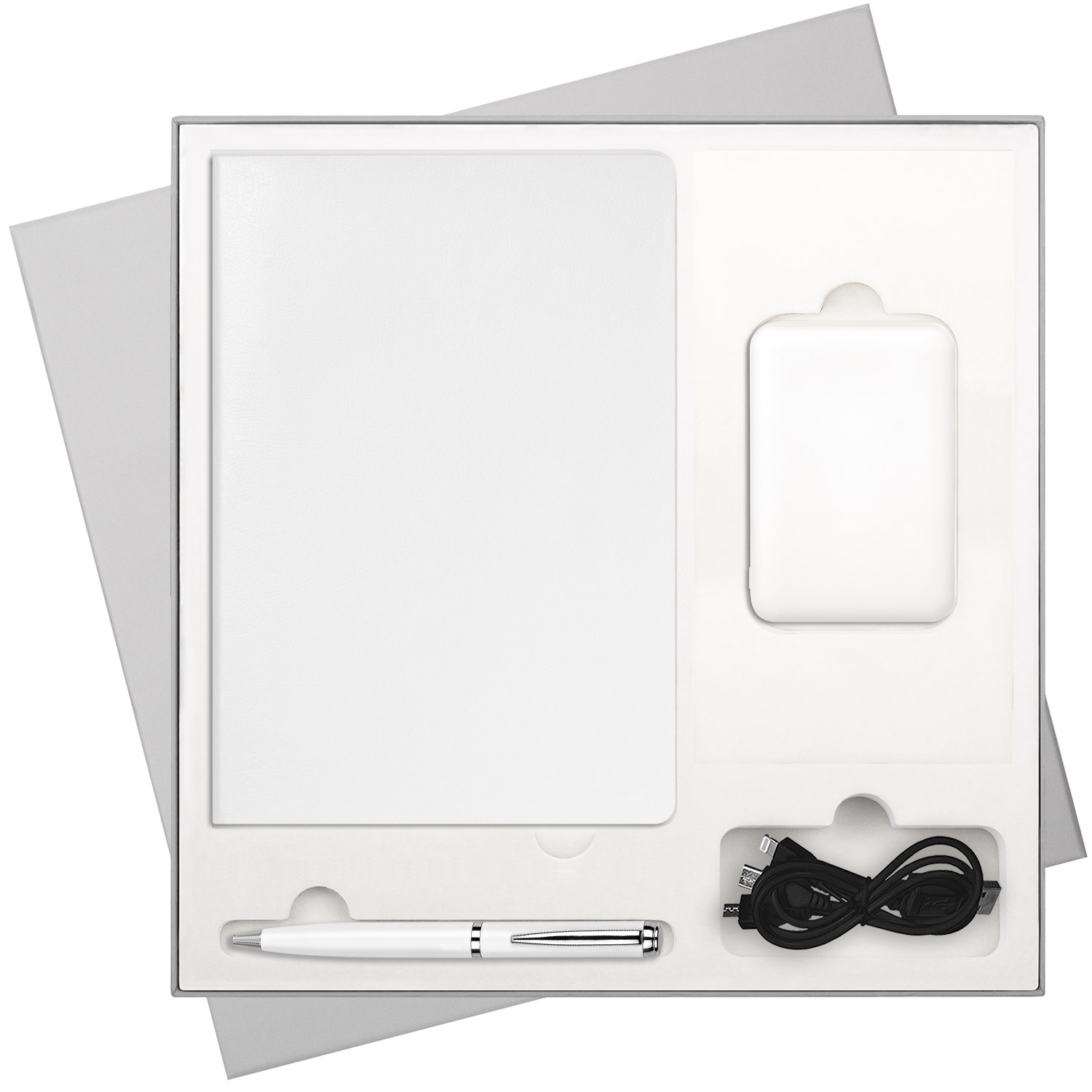 Подарочная коробка без ложемента для ежедневника, ручки и аккумулятора, серая (под съемные ложементы)