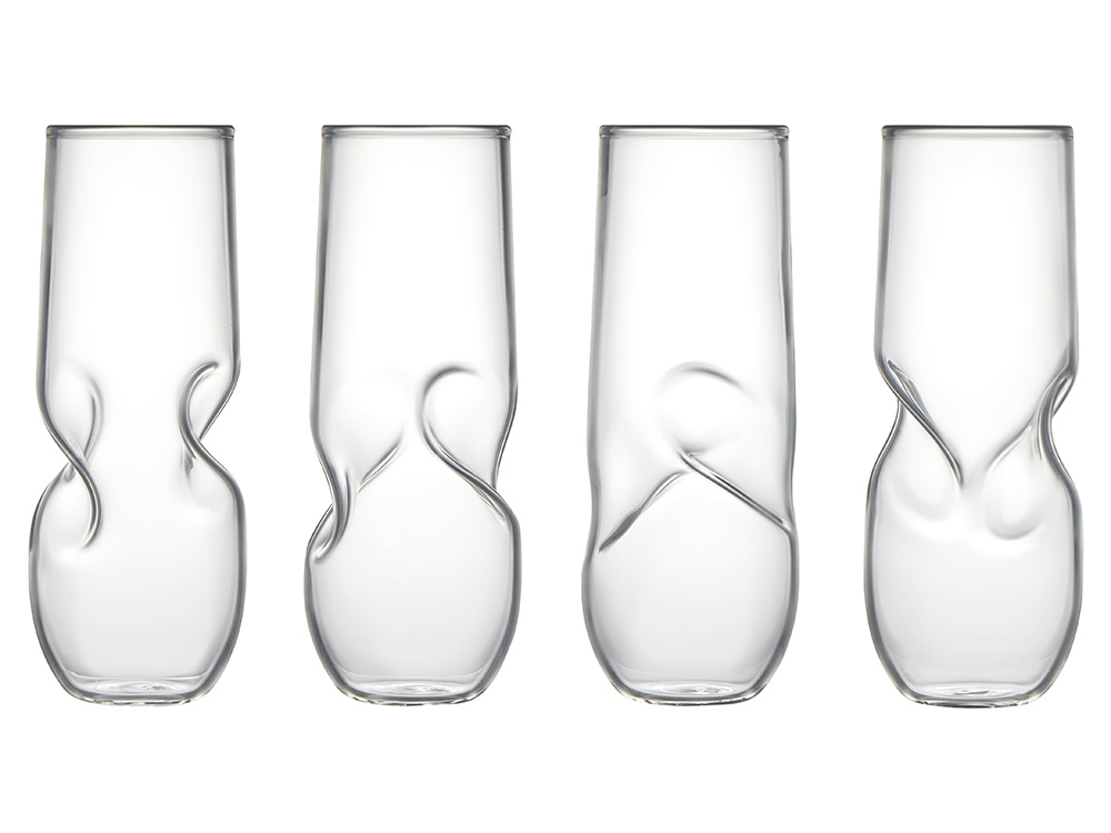 Два изящных бокала объёмом 260 мл поражают необычной формой — их поверхность слегка изогнута, создавая не только эффектный визуальный акцент, но и особое удобство: пальцы словно попадают в естественные пазы, благодаря чему бокал идеально ложится в руку.