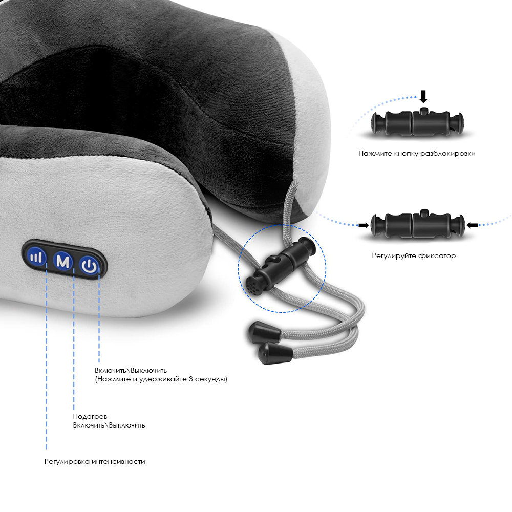 Zen сочетает в себе функции массажа, подогрева и эргономичной поддержки шеи, превращая каждую минуту отдыха в полноценную терапию. Благодаря встроенной аккумуляторной батарее и возможности зарядки от внешнего источника, вы получаете свободу использовать подушку где угодно — в самолёте, автомобиле, офисе или дома.