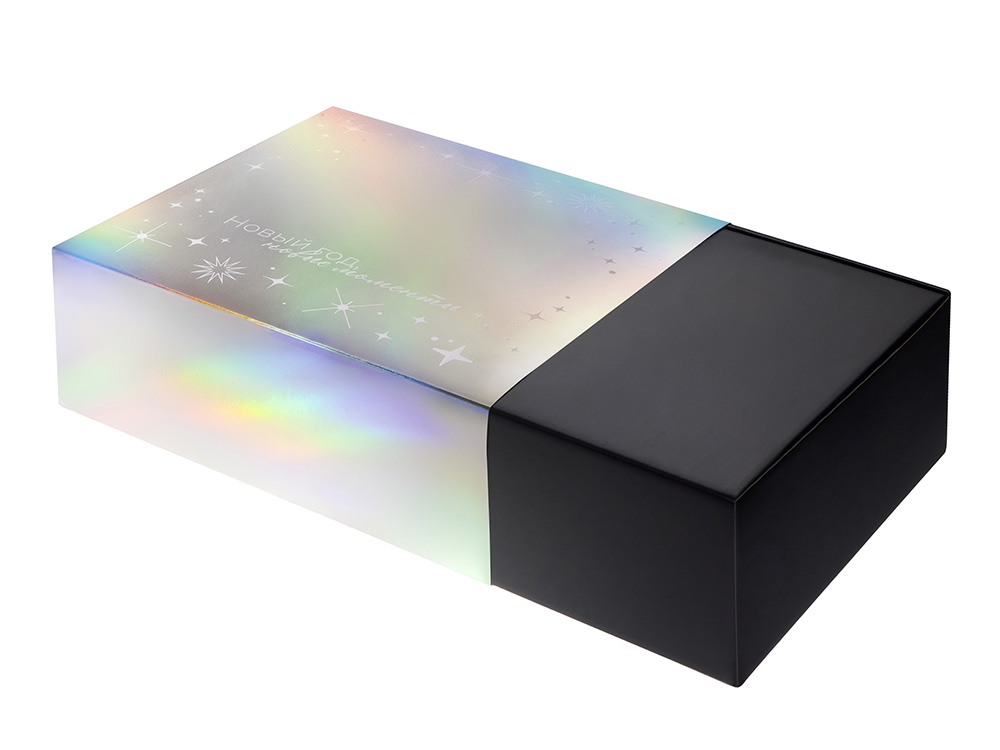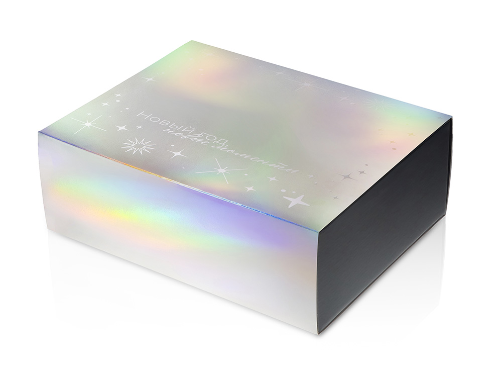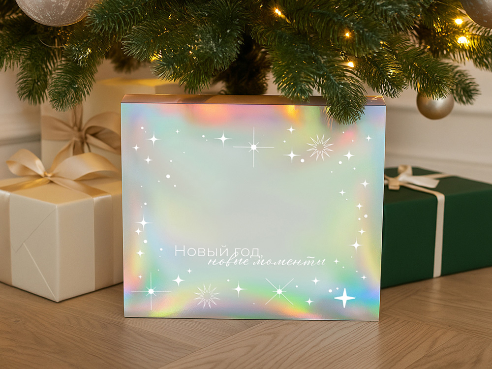 Упаковка — это первое впечатление о подарке. В преддверии Нового года особенно важно создать атмосферу праздника — стильная и аккуратно выполненная коробка с голографическим шубером сразу вызывает ощущение заботы, уюта и волшебного ожидания.