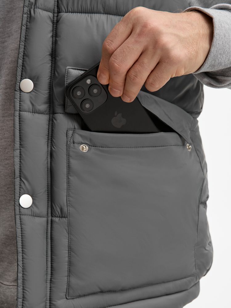 - Утепленные накладные карманы: два на кнопках с вертикальным входом и два с боковым — итого 4 кармана