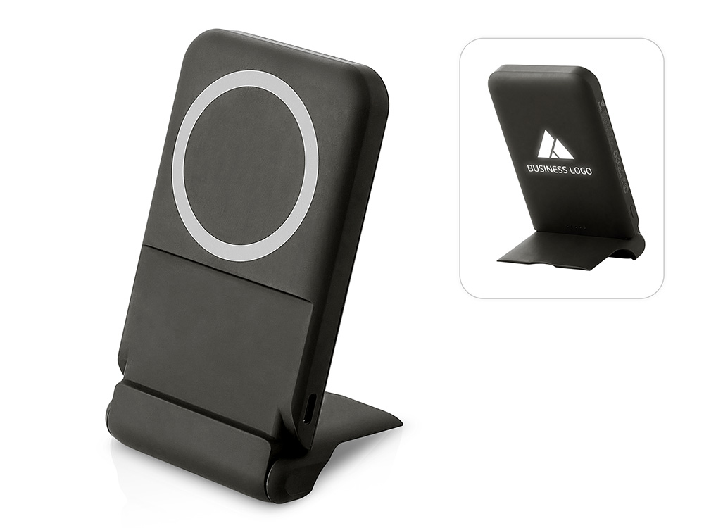 Беспроводной внешний аккумулятор с подсветкой лого и подставкой Magflash, 10000 мАч, 15 Вт, черный
