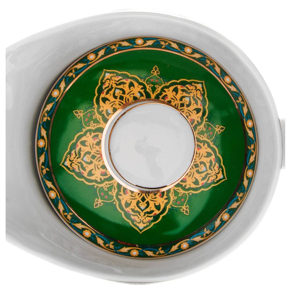 ТМ LEFARD представляет эксклюзивную коллекцию посуды «Суры из Корана». Кувшины, чайники, сахарницы, кружки, чайные пары, декоративные тарелки и другие предметы выполнены из высококачественного тонкостенного фарфора. Восточный орнамент, небольшие отрывки Сур из Корана на классическом арабском и русском языках с отделкой золотом украшают изделия. Это прекрасный мусульманский подарок, всегда нужный и теплый. Относитесь к нему бережно и с почтением. Посуду коллекции можно использовать как в повседневной жизни, так и на торжественном приеме. Не рекомендуется мыть в посудомоечной машине и использовать в микроволновой печи.