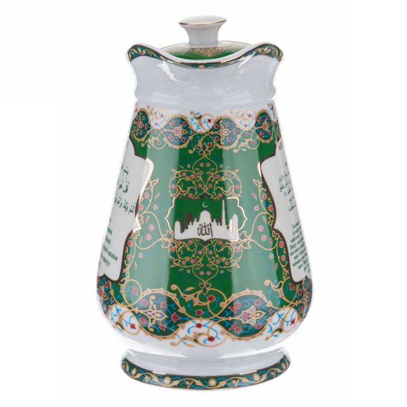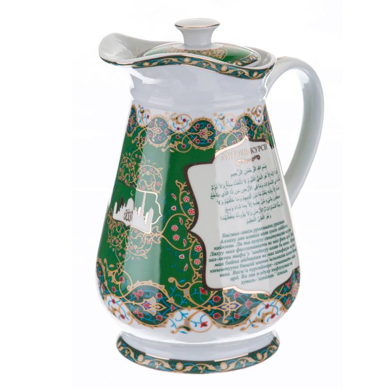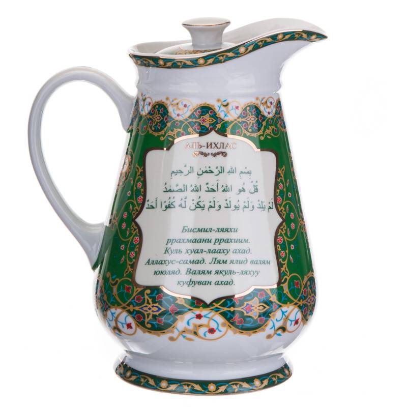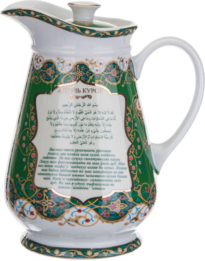 ТМ LEFARD представляет эксклюзивную коллекцию посуды «Суры из Корана». Кувшины, чайники, сахарницы, кружки, чайные пары, декоративные тарелки и другие предметы выполнены из высококачественного тонкостенного фарфора. Восточный орнамент, небольшие отрывки Сур из Корана на классическом арабском и русском языках с отделкой золотом украшают изделия. Это прекрасный мусульманский подарок, всегда нужный и теплый. Относитесь к нему бережно и с почтением. Посуду коллекции можно использовать как в повседневной жизни, так и на торжественном приеме. Не рекомендуется мыть в посудомоечной машине и использовать в микроволновой печи.