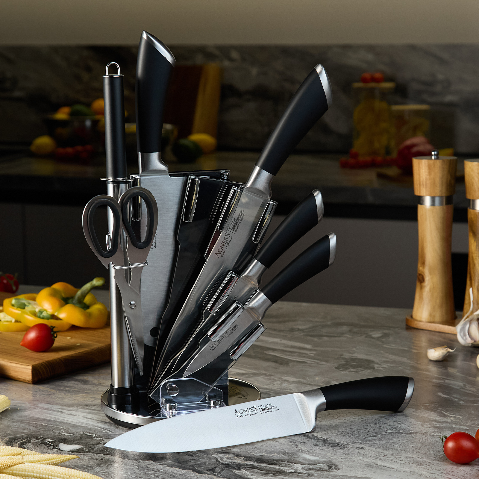 Нож - главный инструмент на кухне, а вернее ножи, т.к. даже самый лучший нож не сможет справиться со всем многообразием задач. Выбирая набор ножей AGNESS - Вы приобретаете комплект самых необходимых и чаще всего используемых ножей. Преимущества ножей AGNESS:
