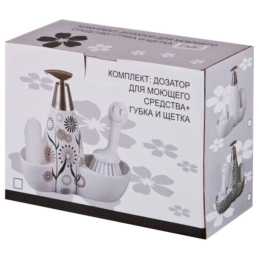 ДОЗАТОР ДЛЯ МОЮЩЕГО СРЕДСТВА "FRESH" 500 МЛ + ГУБКА И ЩЕТКА 20*9*18 СМ (КОР=12ШТ.)