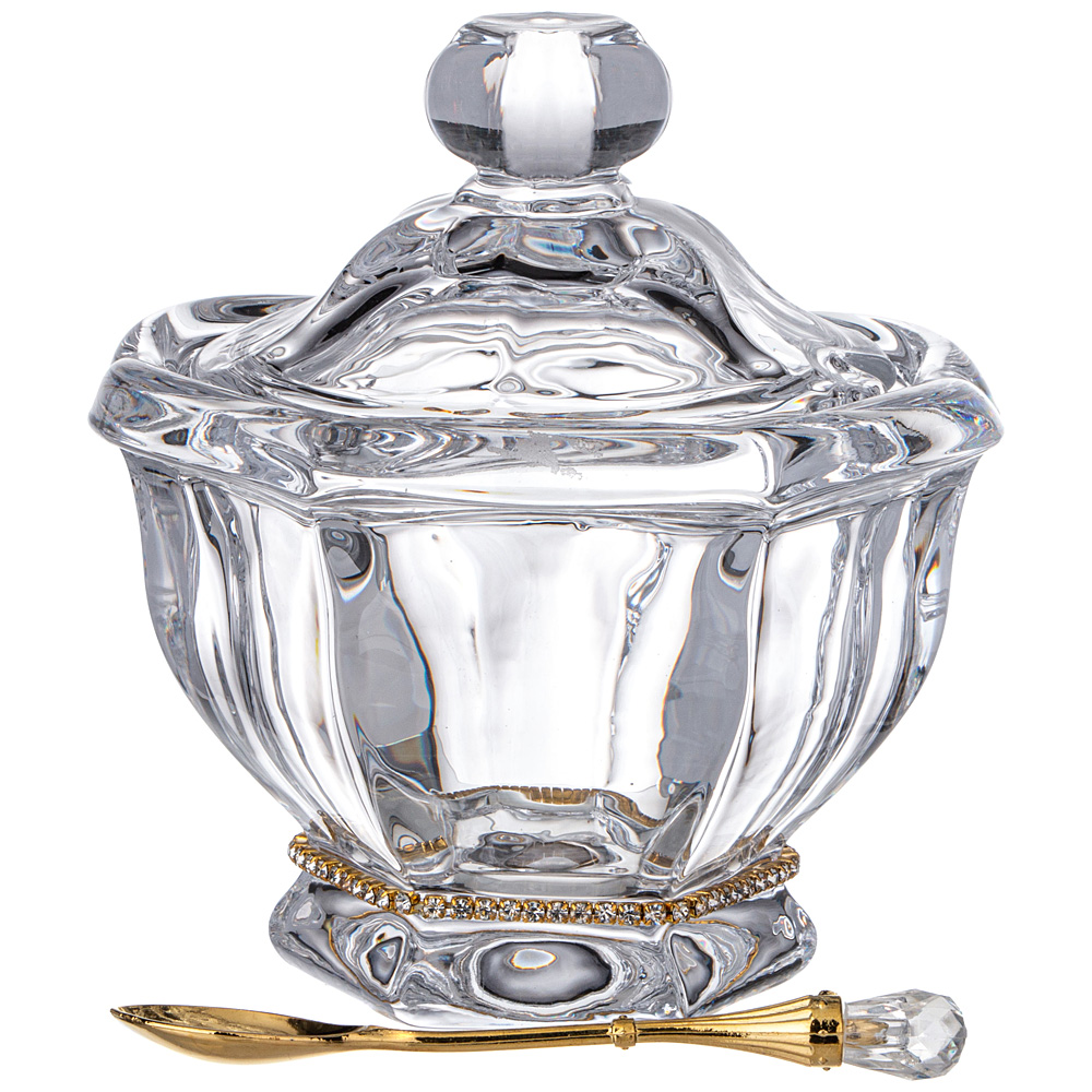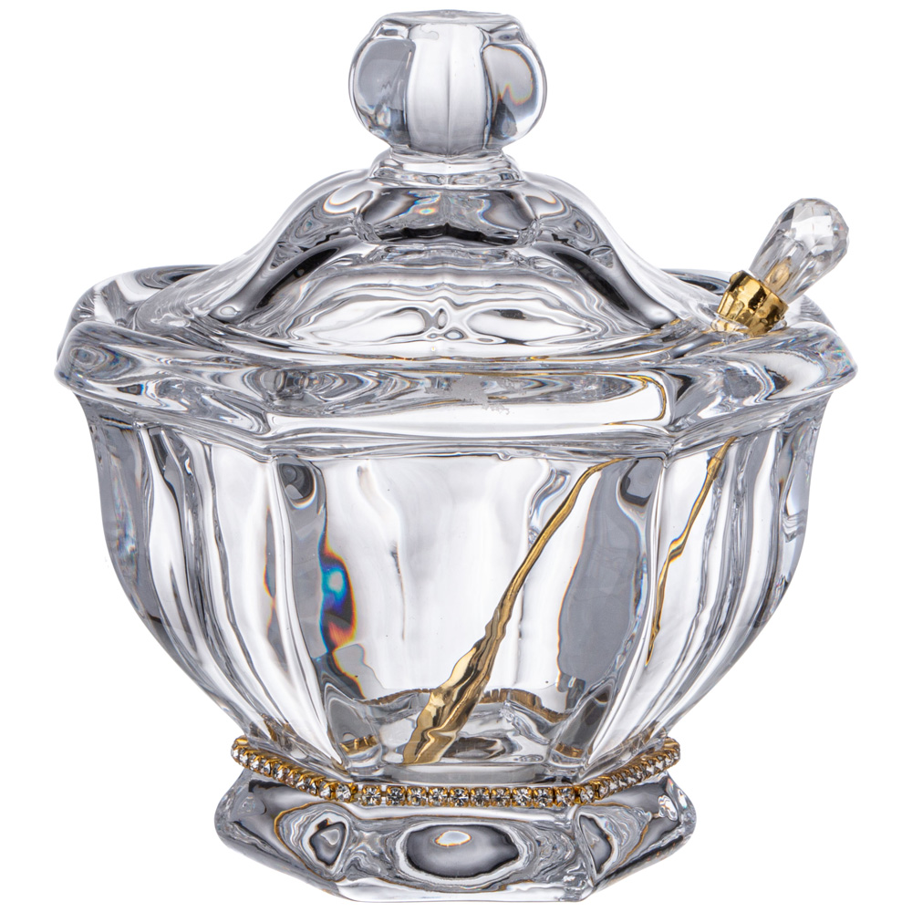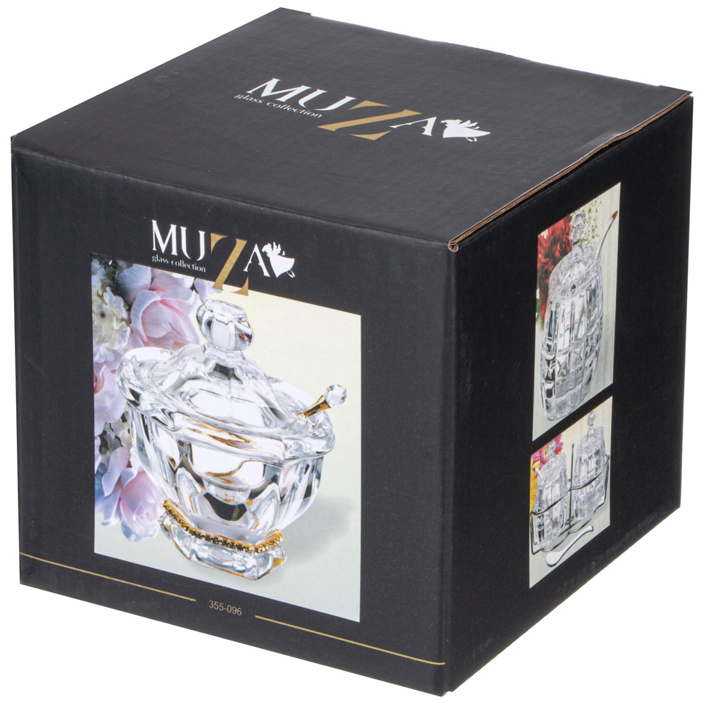 БАНКА ДЛЯ МЕДА "РУБЛЕВКА" 250 МЛ. 12.5*12.5 СМ. ВЫСОТА=14 СМ. + ЛОЖКА. КОЛЛЕКЦИЯ "MUZA" (КОР=8ШТ.)