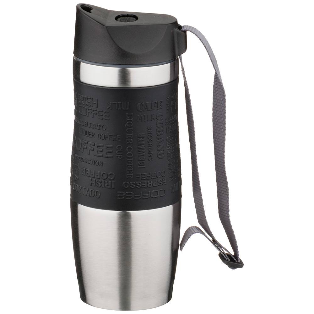 ТЕРМОКРУЖКА AGNESS 360 МЛ С КНОПКОЙ-СТОППЕРОМ, ЦВЕТ: ЧЕРНЫЙ(КОР=30ШТ.)