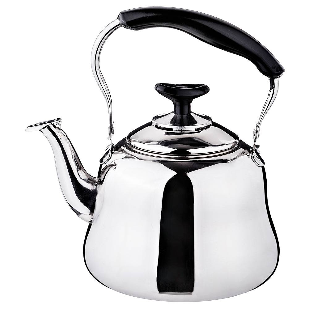 Благодаря пластиковой вставке чайник удобно переносить, а встроенный свисток подскажет, что вода в чайнике закипела и его пора снимать с плиты.