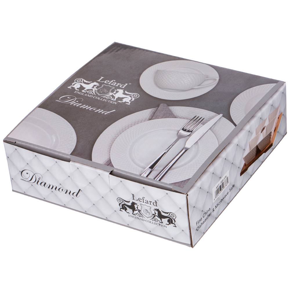 TM Lefard коллекция "Диаманд" - посуда и предметы сервировки из белого фарфора с рельефом. Изделия выполнены из упрочненного фарфора. Стильная упаковка. Идеальная сервировка праздничного и ежедневного стола. Отличный подарок! Продукция сертифицирована, безопасна для контакта с пищевыми продуктами. Можно ставить в микроволновую печь и мыть в посудомоечной машине. Примечание: деревянная часть НЕ предназначена для использования в микроволновой печи и мытья в посудомоечной машине !