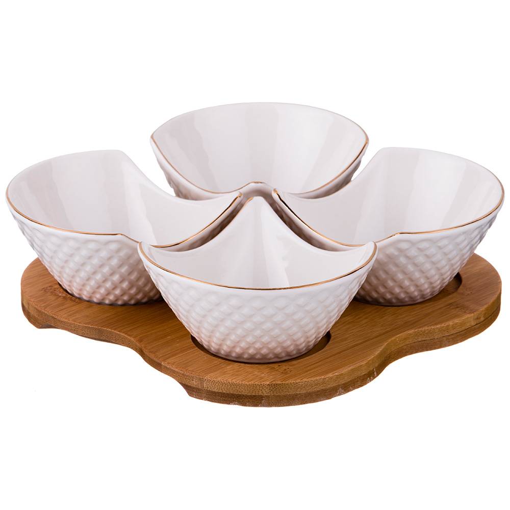 МЕНАЖНИЦА 4 СЕКЦИИ НА ДЕРЕВ.ПОДСТАВКЕ LEFARD "ДИАМАНД ГОЛД" 18*18*5 СМ (КОР=24НАБ.)