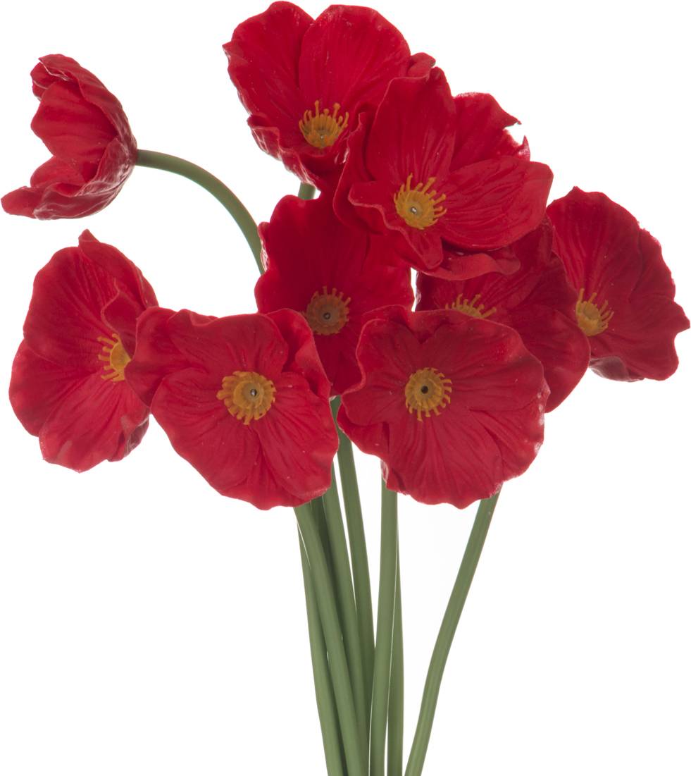 КОМПЛЕКТ ЦВЕТОВ ИСКУССТВЕННЫХ ИЗ 9 ШТ "МАК КРАСНЫЙ" ДЛИНА=33 СМ (МАЛ=12КОМП./КОР=144КОМП.)