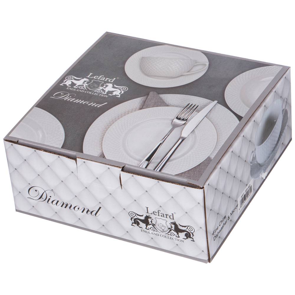 TM Lefard коллекция "Диаманд" - посуда и предметы сервировки из белого фарфора с рельефом. Изделия выполнены из упрочненного фарфора. Стильная упаковка. Идеальная сервировка праздничного и ежедневного стола. Отличный подарок! Продукция сертифицирована, безопасна для контакта с пищевыми продуктами. Можно ставить в микроволновую печь и мыть в посудомоечной машине.