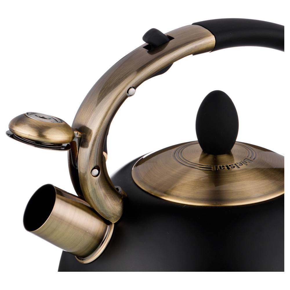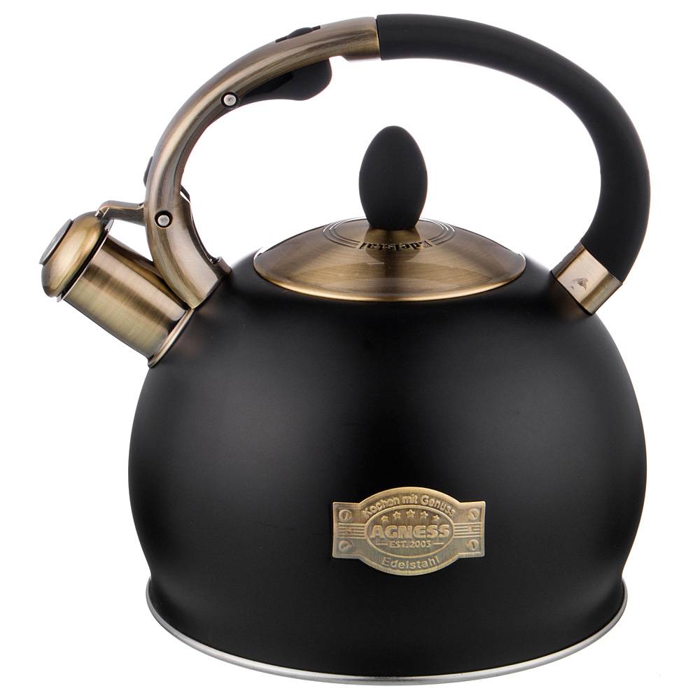 ЧАЙНИК AGNESS СО СВИСТКОМ, СЕРИЯ ЧЕРНОЕ ЗОЛОТО, 3,0 Л ТЕРМОАККУМУЛИРУЮЩЕЕ ДНО, ИНДУКЦИЯ (КОР=6ШТ)