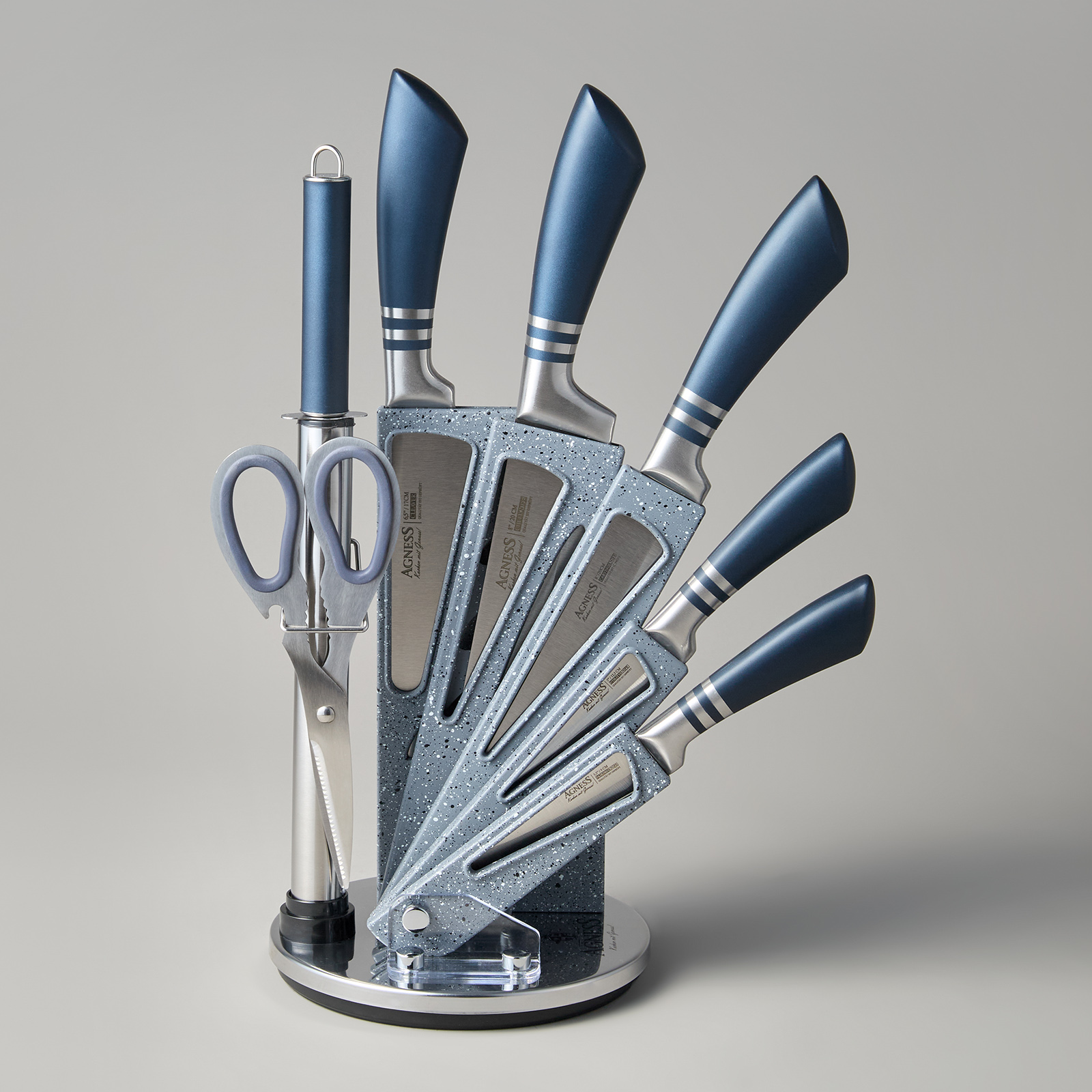 Нож - главный инструмент на кухне, а вернее ножи, т.к. даже самый лучший нож не сможет справиться со всем многообразием задач. Выбирая набор ножей AGNESS - Вы приобретаете комплект самых необходимых и чаще всего используемых ножей. Преимущества ножей AGNESS: