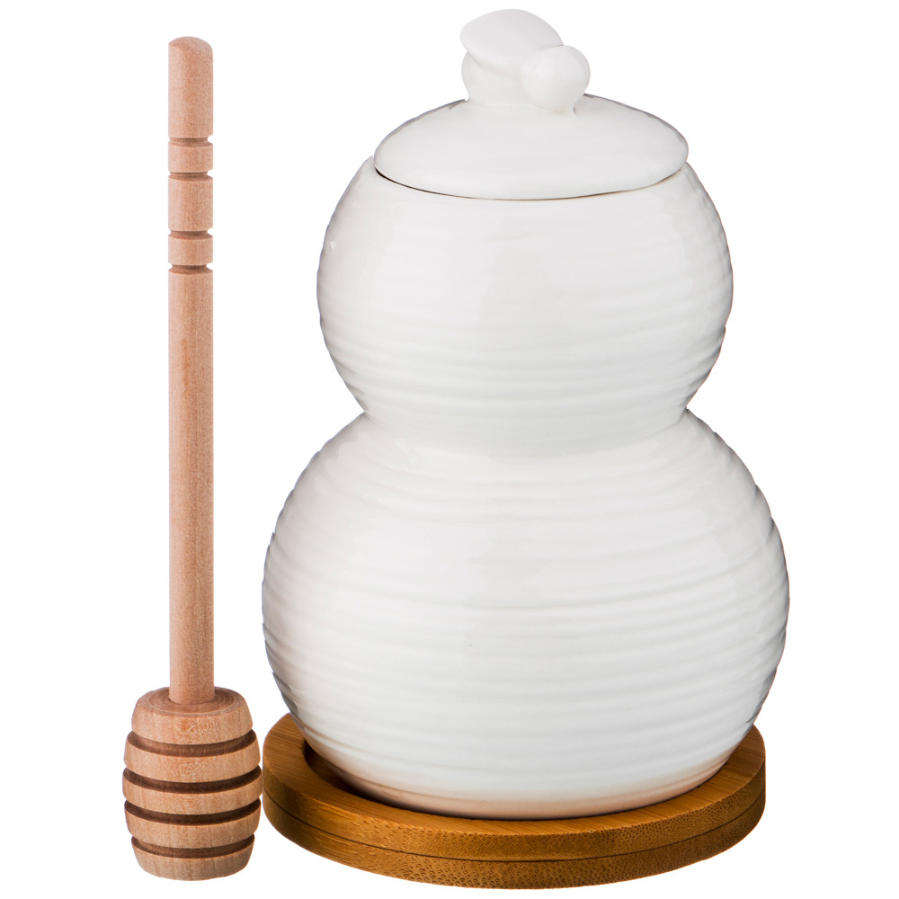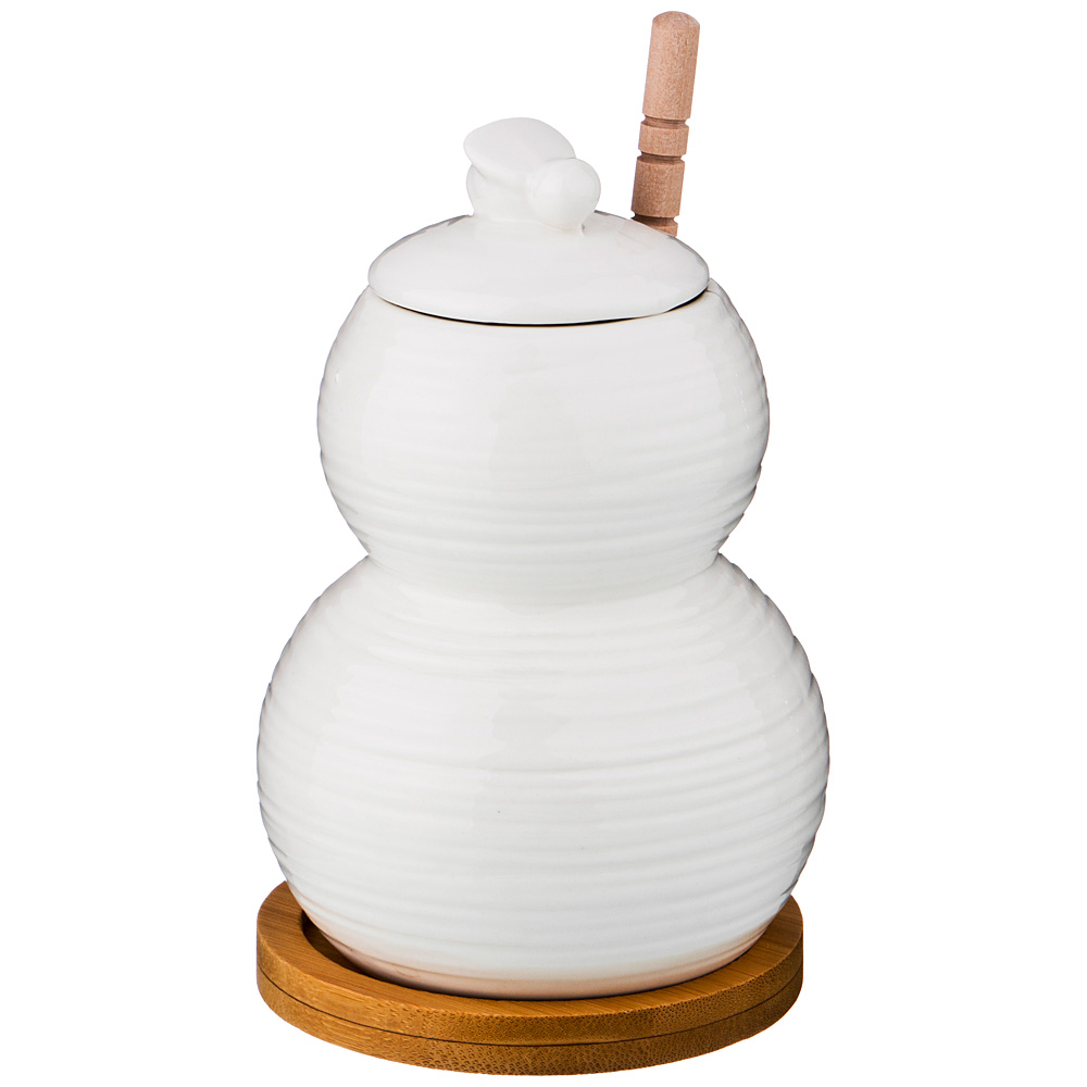 БАНКА ДЛЯ МЕДА С ДЕРЕВ. ПАЛОЧКОЙ LEFARD "NATIVE" НА ПОДСТАВКЕ 350 МЛ 9*14 СМ (КОР=36ШТ.)
