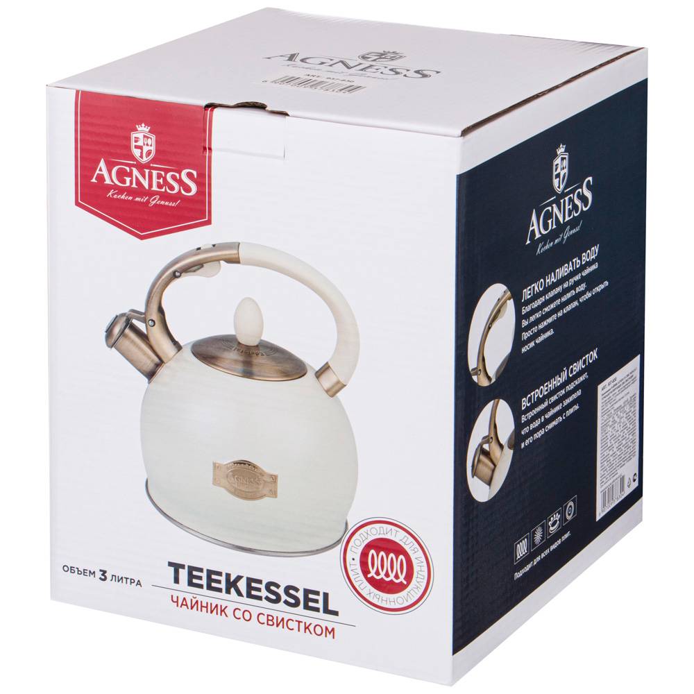 • Благодаря внешнее жаропрочному покрытию и стильному дизайну чайник AGNESS украсит любую кухню