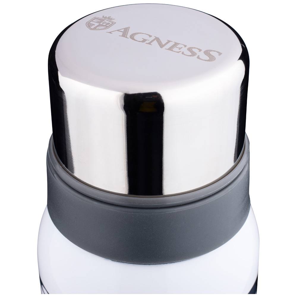 ТЕРМОС AGNESS С УЗКИМ ГОРЛОМ И 2-МЯ КРЫШКАМИ-ЧАШКАМИ, 1000МЛ, КОЛБА НЖС (КОР=12ШТ.)