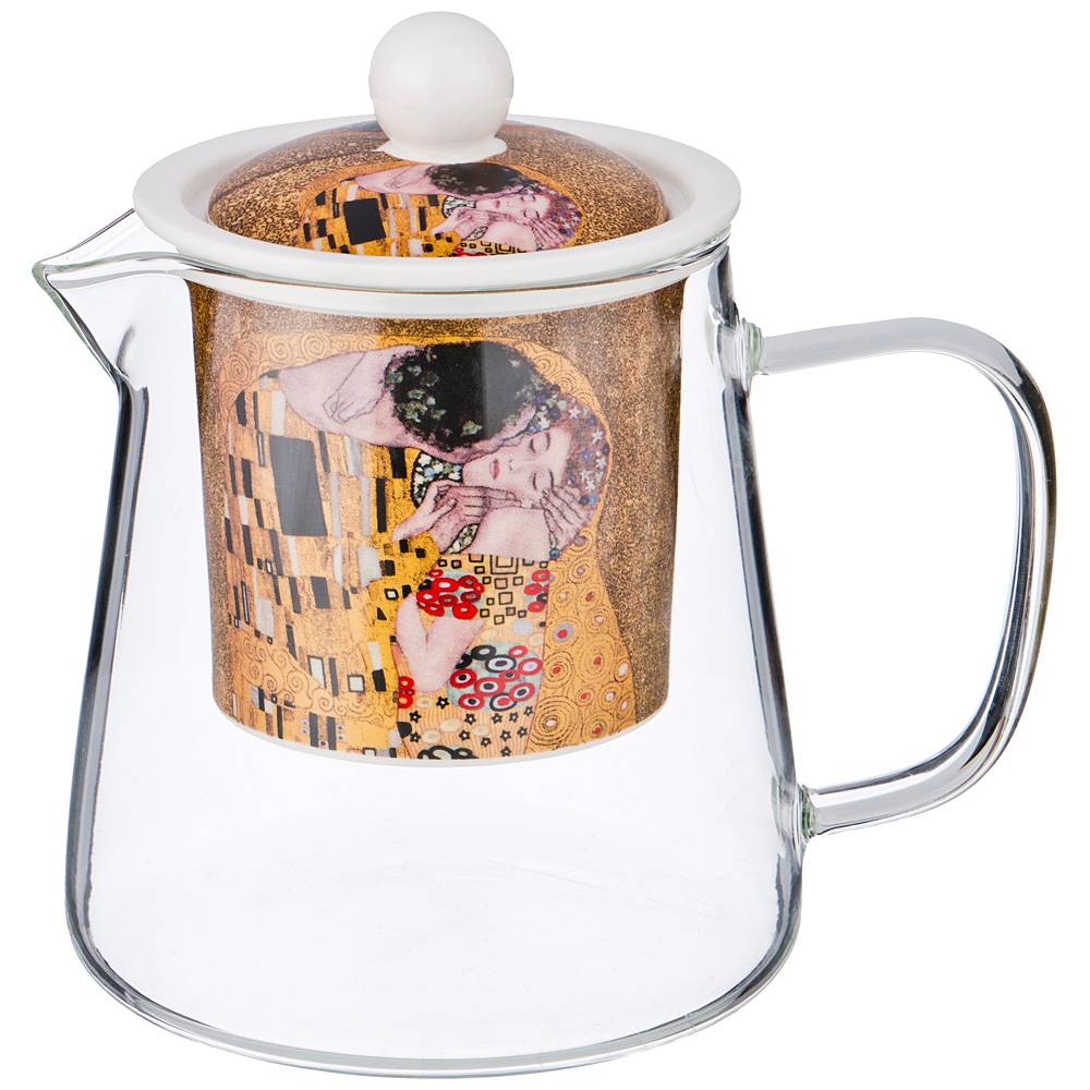 ЧАЙНИК СТЕКЛЯННЫЙ С СИТОМ LEFARD "ПОЦЕЛУЙ" (Г.КЛИМТ) 400 МЛ ЗОЛОТОЙ (КОР=24ШТ.)