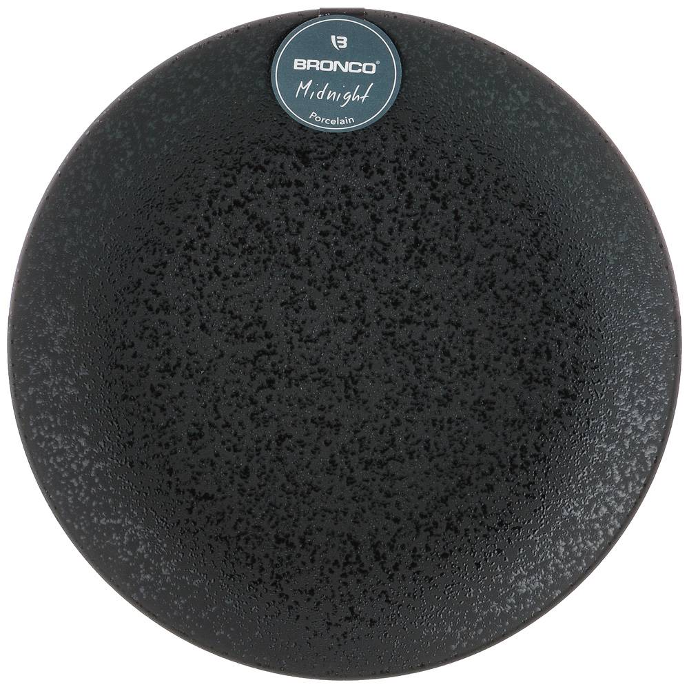 ТМ BRONCO коллекция MIDNIGHT - это запатентованный продукт. Черная поверхность, визуально близкая к чугуну, имеет металлическую текстуру, что придает фарфоровой посуде сдержанный и фундаментальный стиль. Посуда устойчива к царапинам. Нож и вилку можно использовать прямо на поверхности, не царапая глазурь. Черный сдержанный и устойчивый цвет, высокая прочность и долговечность делают эту коллекцию излюбленной покупателями во всем мире. Вся продукция сертифицирована, безопасна для контакта с пищевыми продуктами. Можно использовать в духовом шкафу и микроволновой печи, мыть в посудомоечной машине.