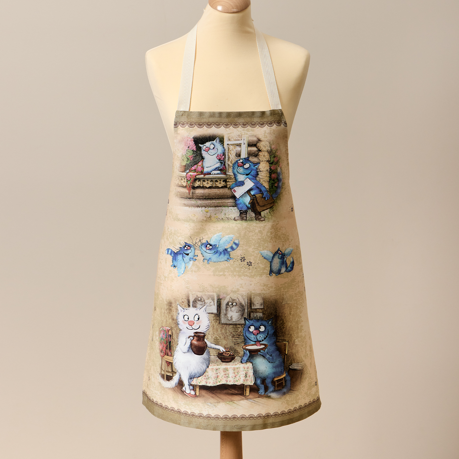 Фартук кухонный женский создан по мотивам знаменитых Синих котов Рины Зенюк, серия "Синие коты. Любовь Моя"
