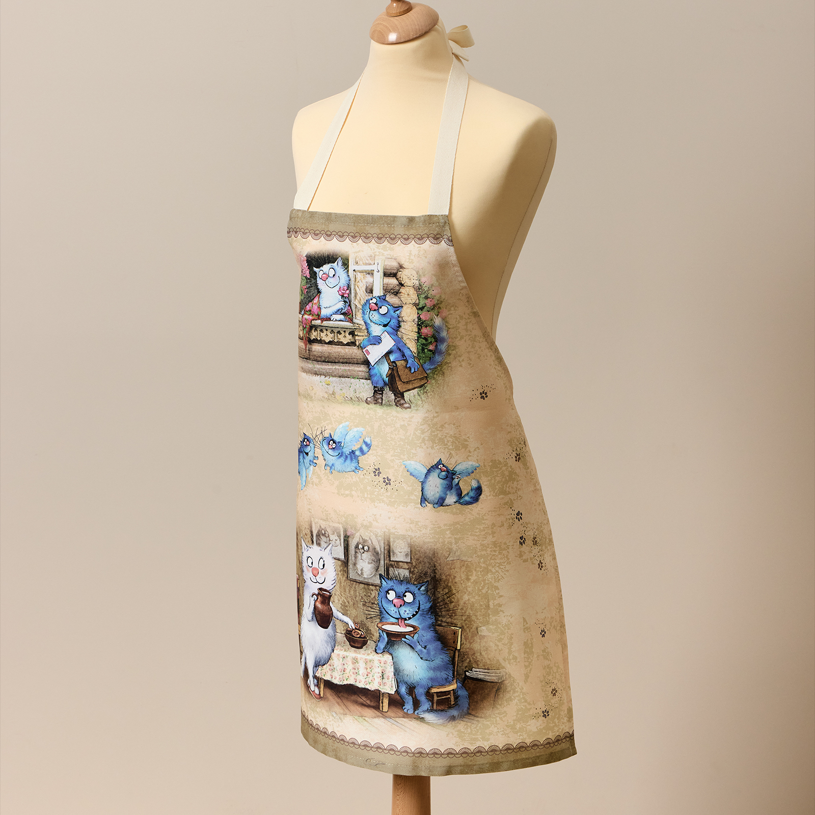 ФАРТУК "СИНИЕ КОТЫ. ЛЮБОВЬ МОЯ", 60Х70 СМ,100% ХЛОПОК,ТВИЛ, БЕЖ