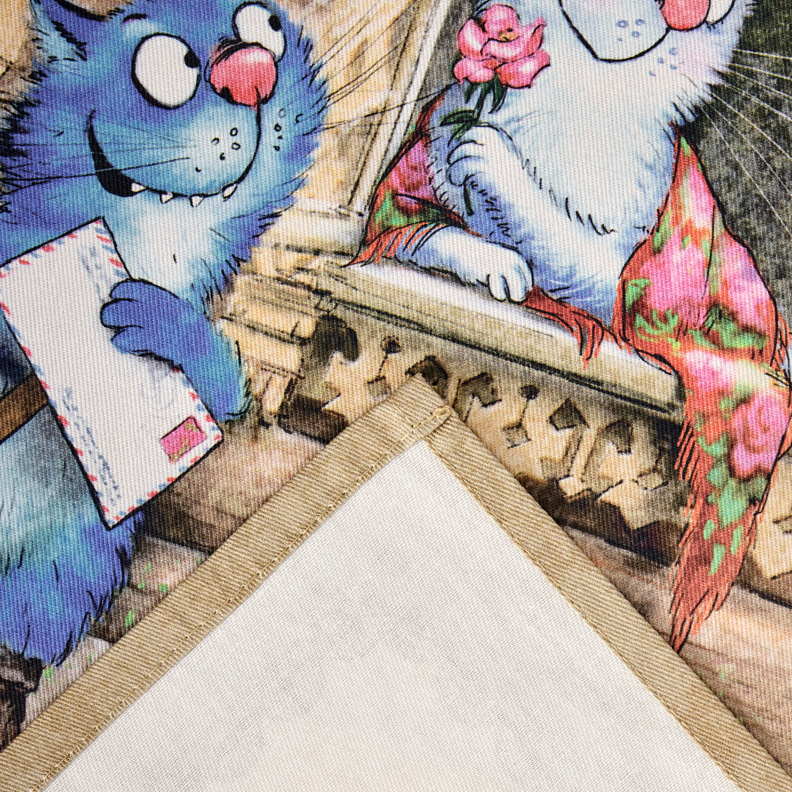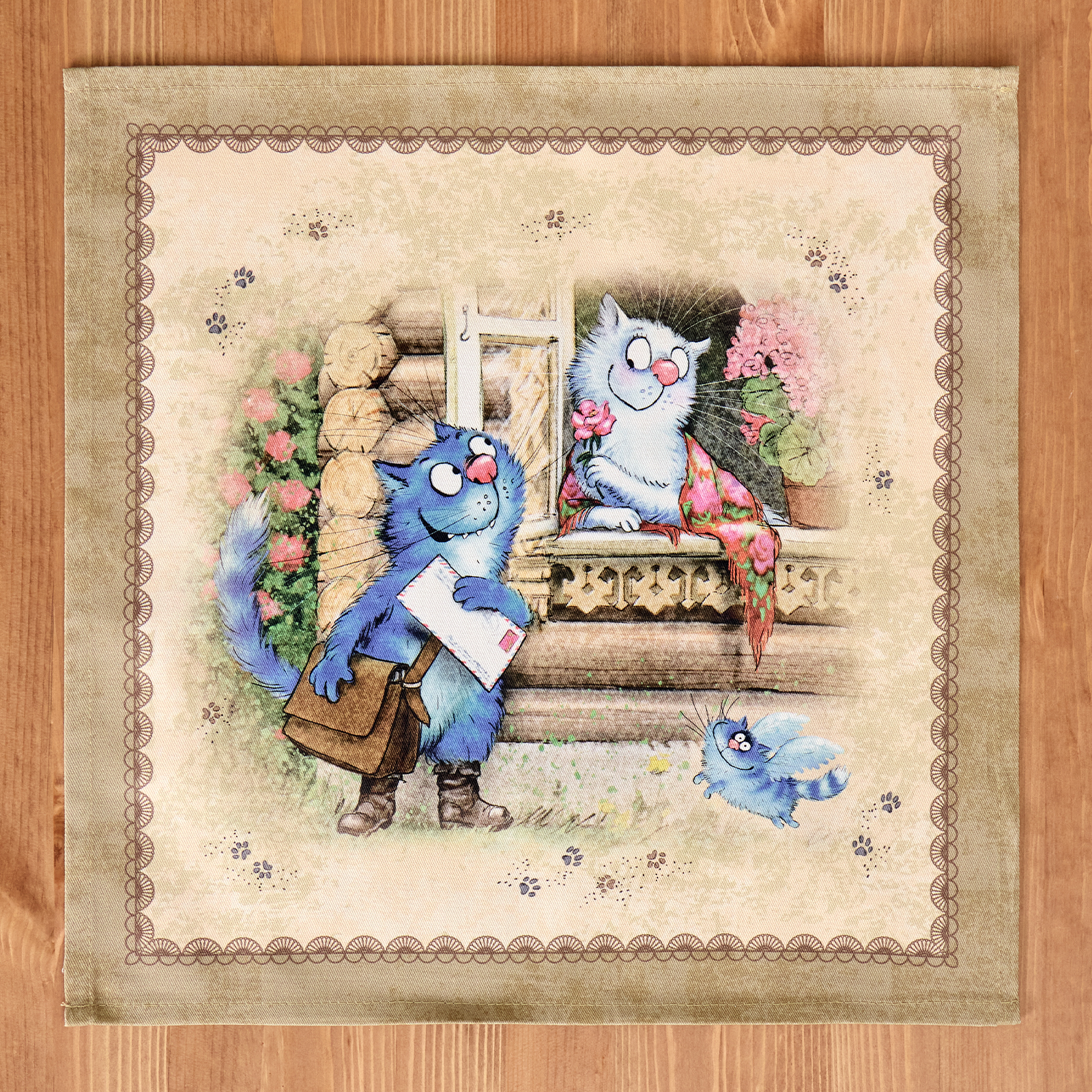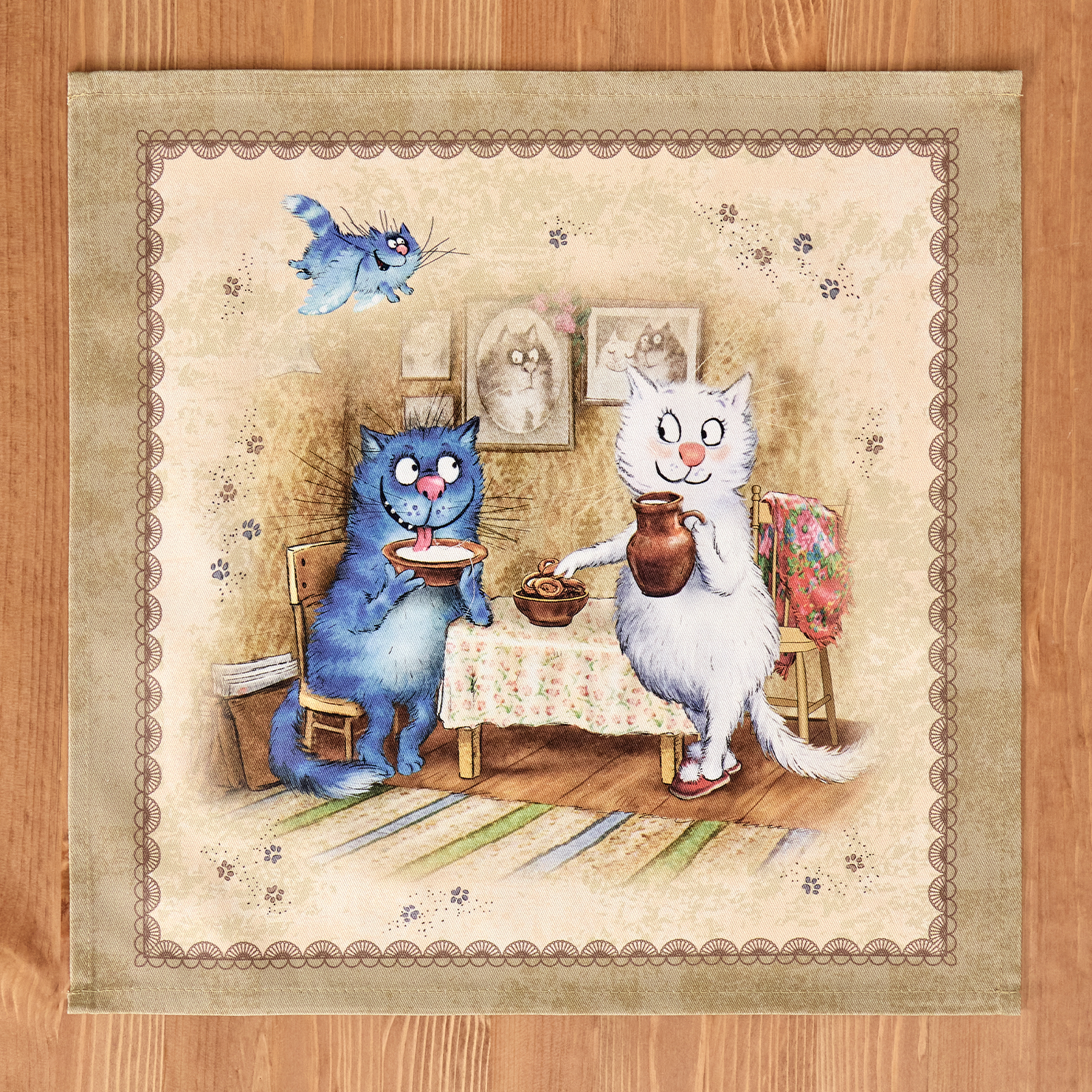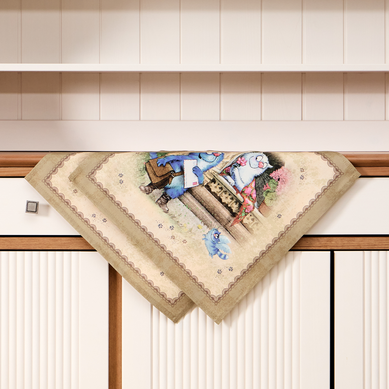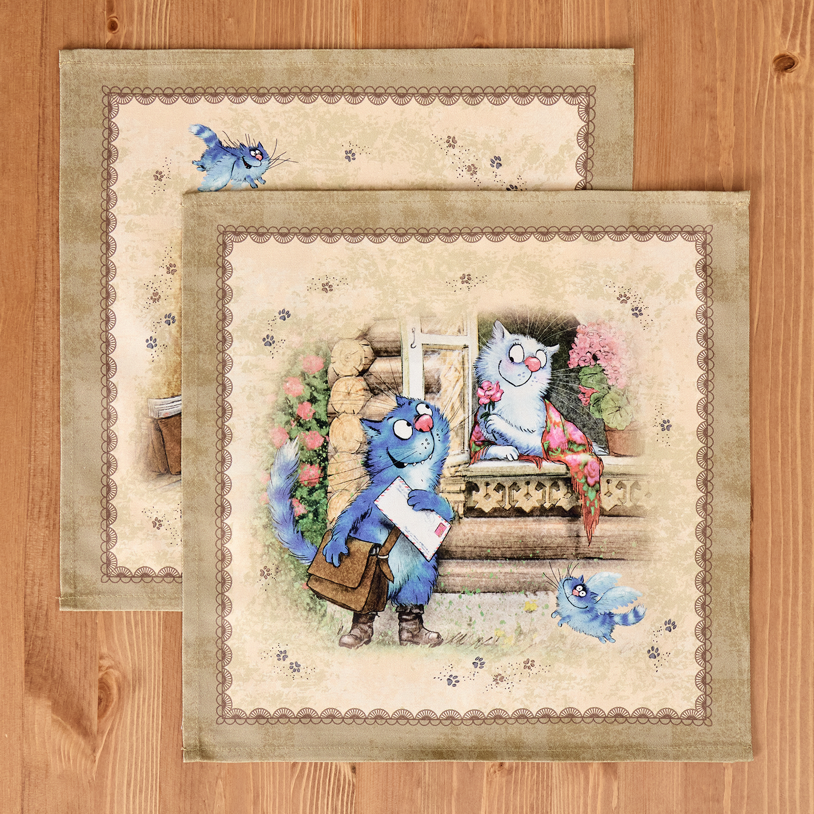 НАБОР САЛФЕТОК ИЗ 2-Х ШТ "СИНИЕ КОТЫ. ЛЮБОВЬ МОЯ",40Х40СМ, 100% ХЛОПОК,ТВИЛ, БЕЖ