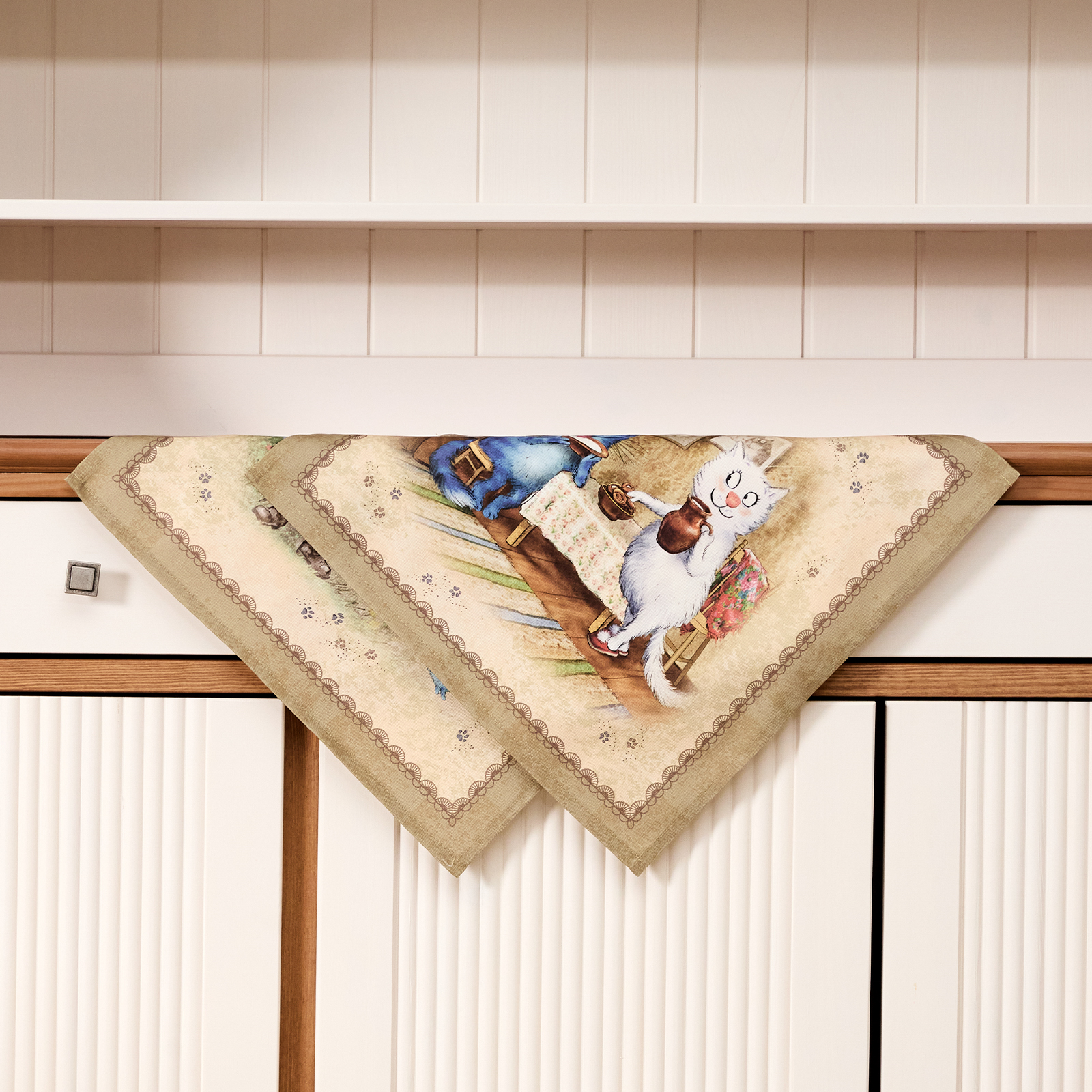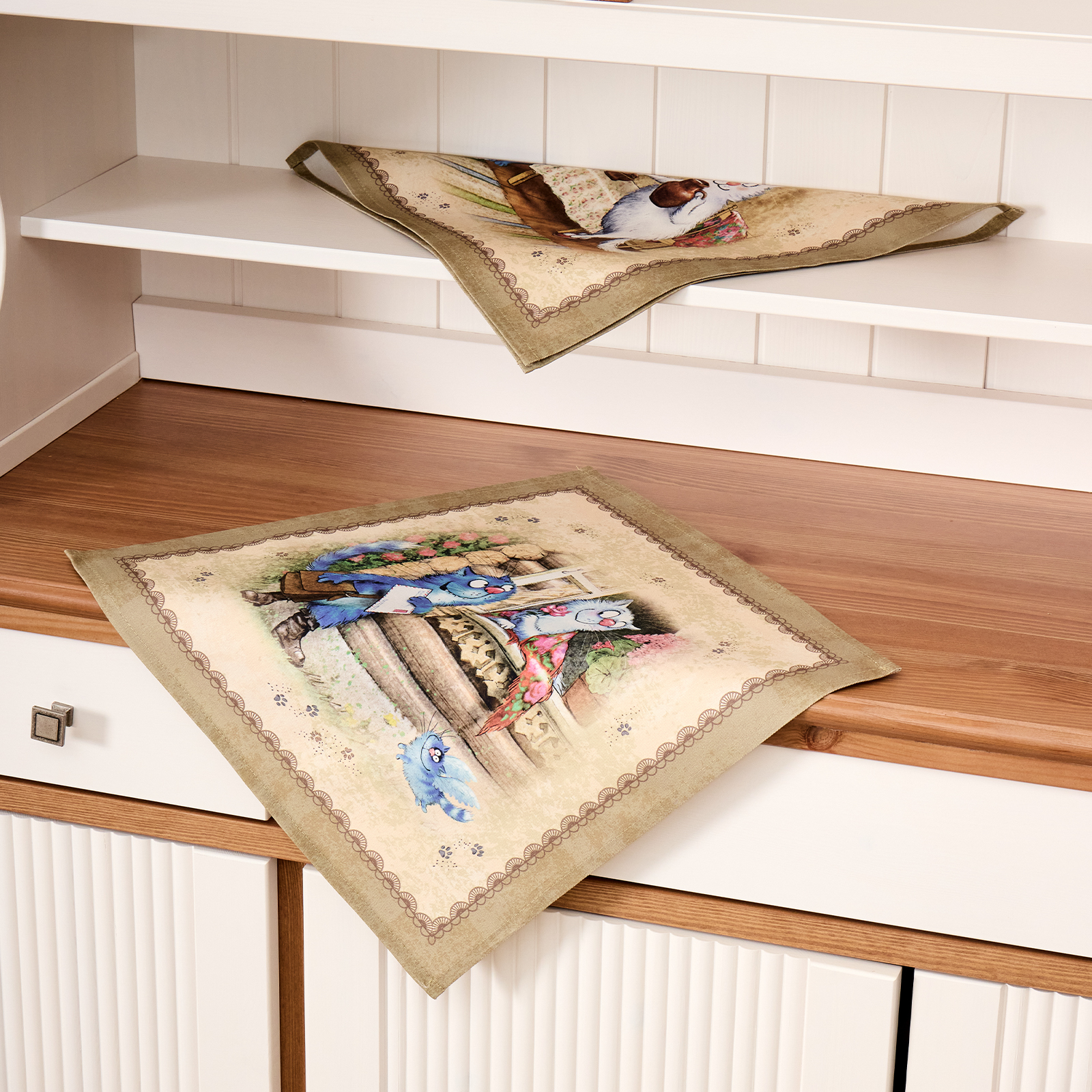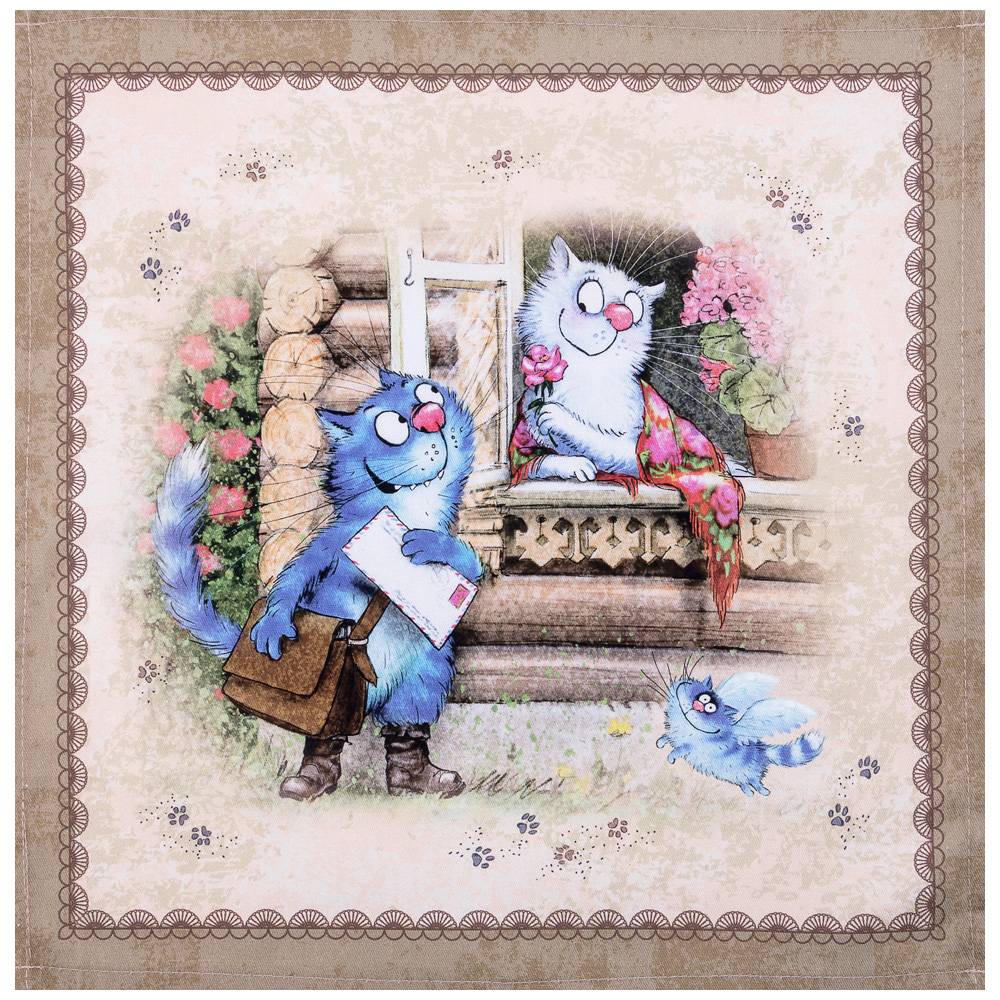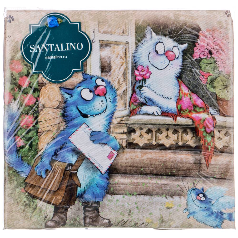 Набор тканевых салфеток от бренда Lefard из серии "Синие коты. Любовь моя" по мотивам иллюстраций Рины Зенюк. Этот комплект из двух квадратных салфеток станет отличным дополнением вашего интерьера. Они изготовлены из высококачественного 100% хлопка с саржевым переплетением Твил. Эта ткань не заламывается и не мнется, имеет высокую плотность, благодаря чему изделия из неё выглядят аккуратно и элегантно.