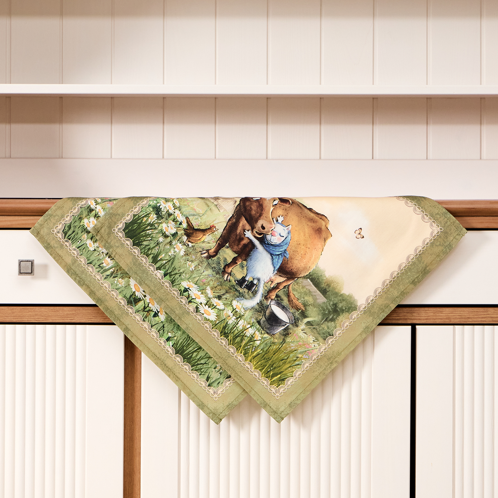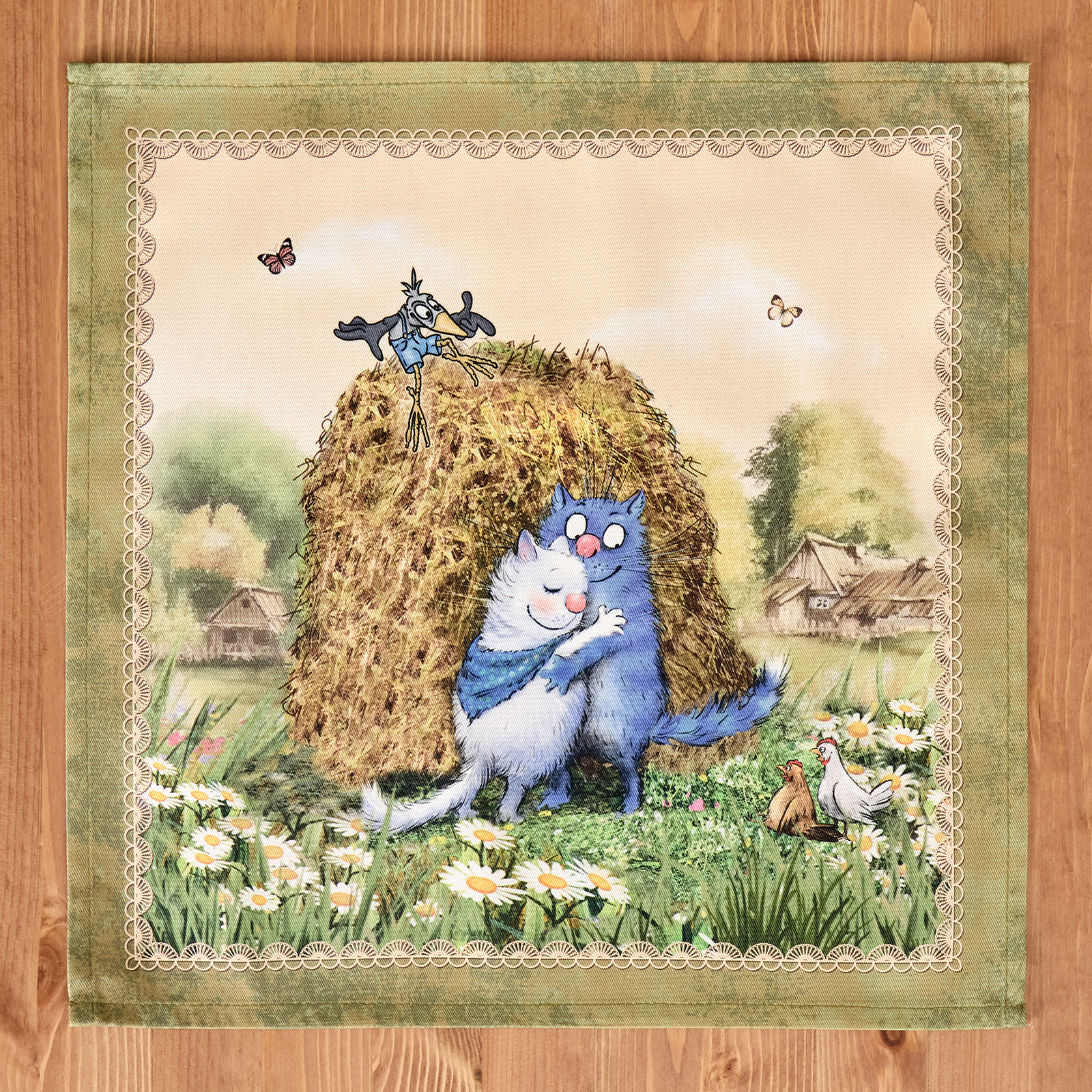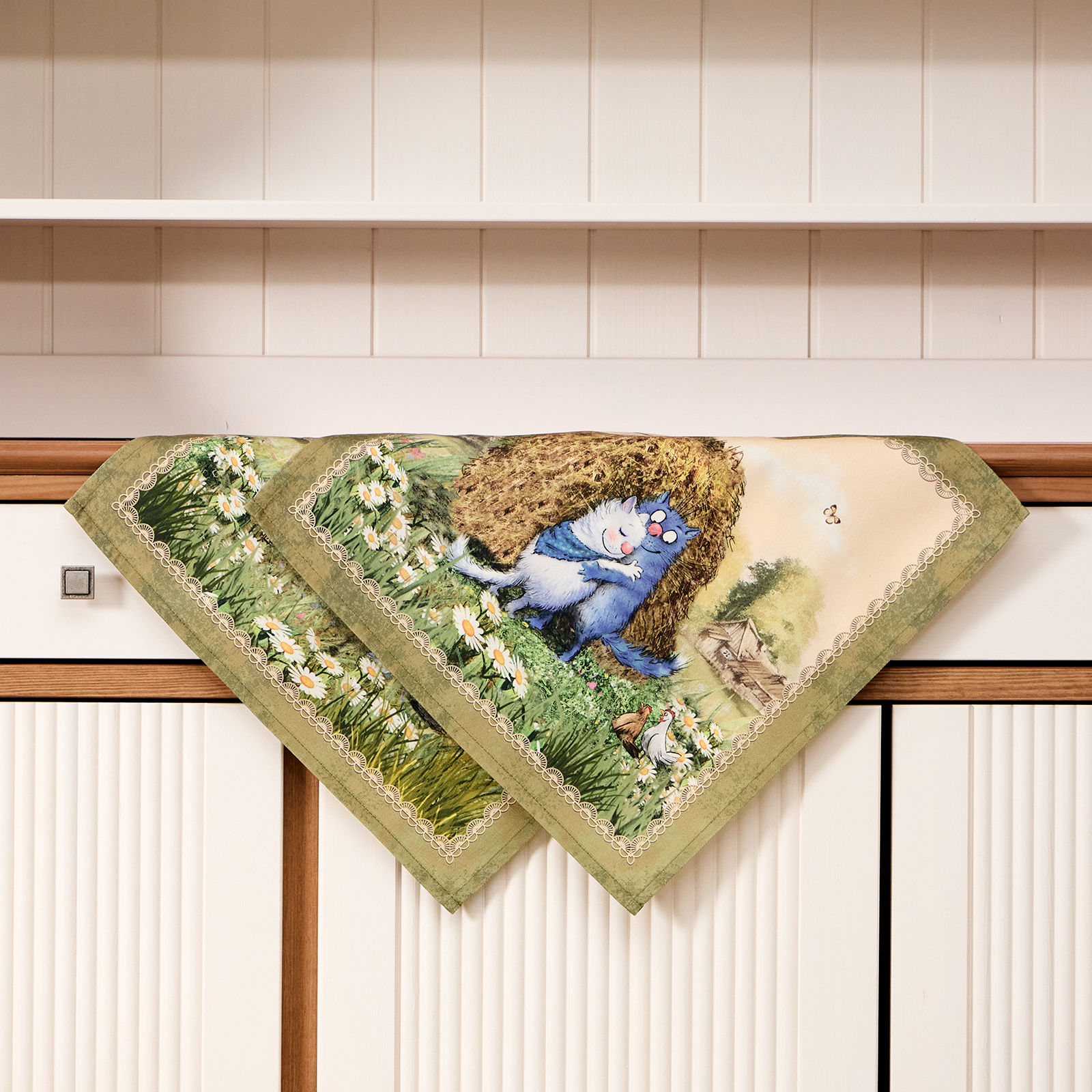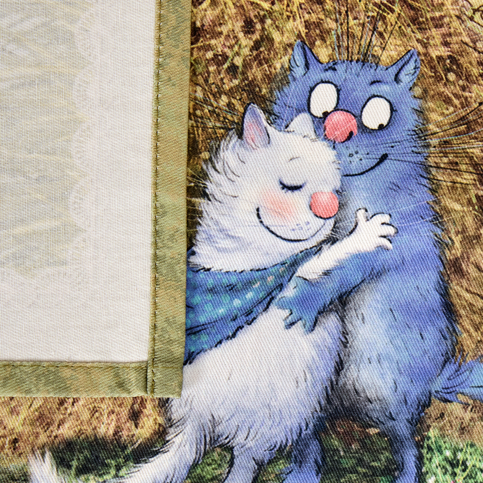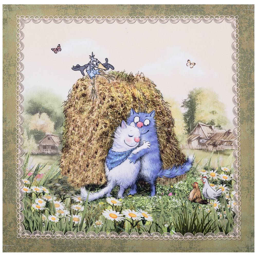 Набор тканевых салфеток от бренда Лефард из серии "Синие коты.Про любовь" по мотивам иллюстраций Рины Зенюк. Этот комплект из двух квадратных салфеток станет отличным дополнением вашего интерьера. Они изготовлены из высококачественного 100% хлопка с саржевым переплетением Твил. Эта ткань не заламывается и не мнется, имеет высокую плотность, благодаря чему изделия из неё выглядят аккуратно и элегантно.