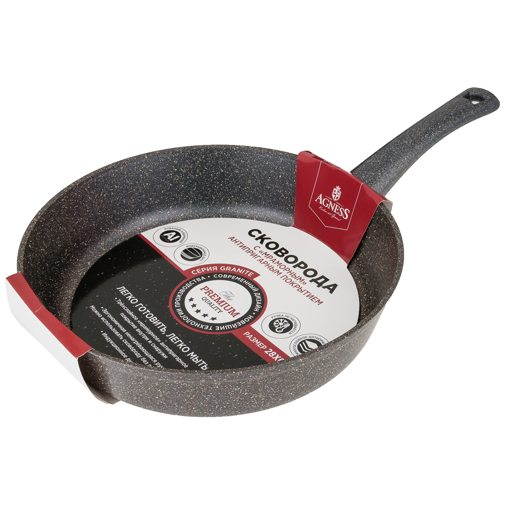 СКОВОРОДА AGNESS ГЛУБОКАЯ С АНТИПРИГАРНЫМ "МРАМОРНЫМ" ПОКРЫТИЕМ, СЕРИЯ GRANITE, 28Х6,6СМ