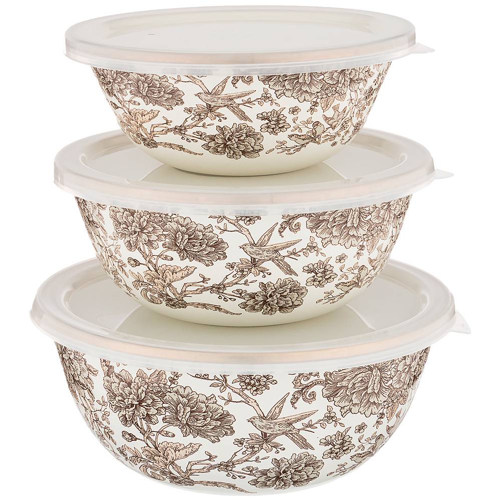 НАБОР МИСОК AGNESS ЭМАЛИРОВАН. С ПЛАСТИК.КРЫШКАМИ, СЕРИЯ ROYAL GARDEN 6ПР. 14/16/18СМ, 0,6/0,9/1,3Л