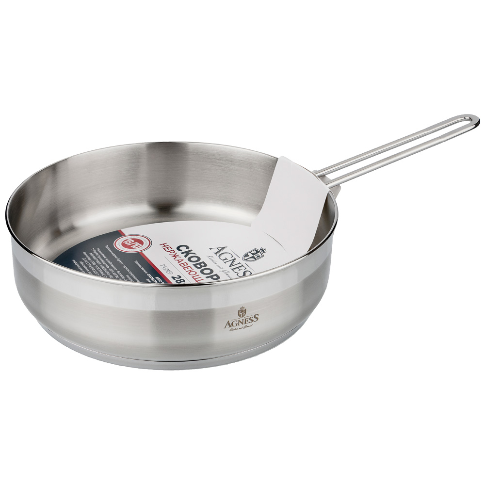 СКОВОРОДА AGNESS PROFESSIONAL 28Х8 СМ, 5 Л ВЫСОКОКАЧЕСТВЕННАЯ НЕРЖ СТАЛЬ 18/10 ИНДУКЦИОННОЕ ДНО