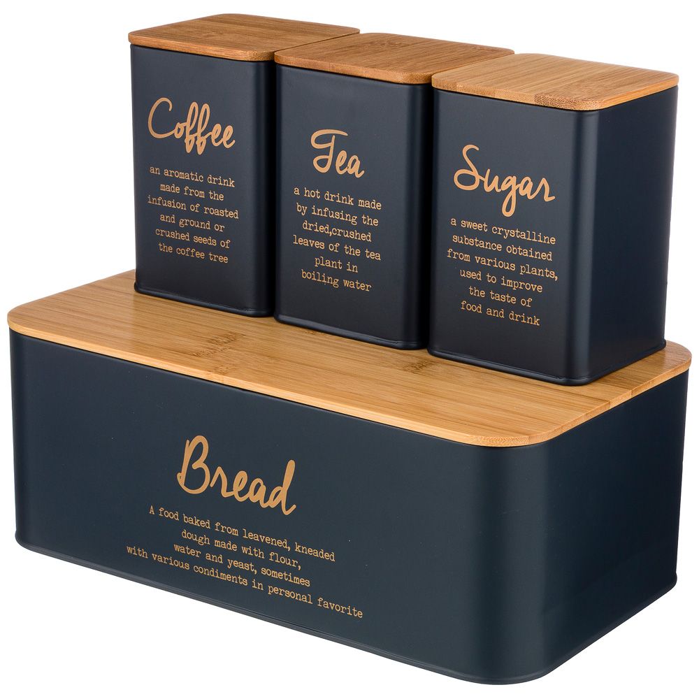 Хлебница и банки для сыпучих продуктов являются частью системы хранения в доме.