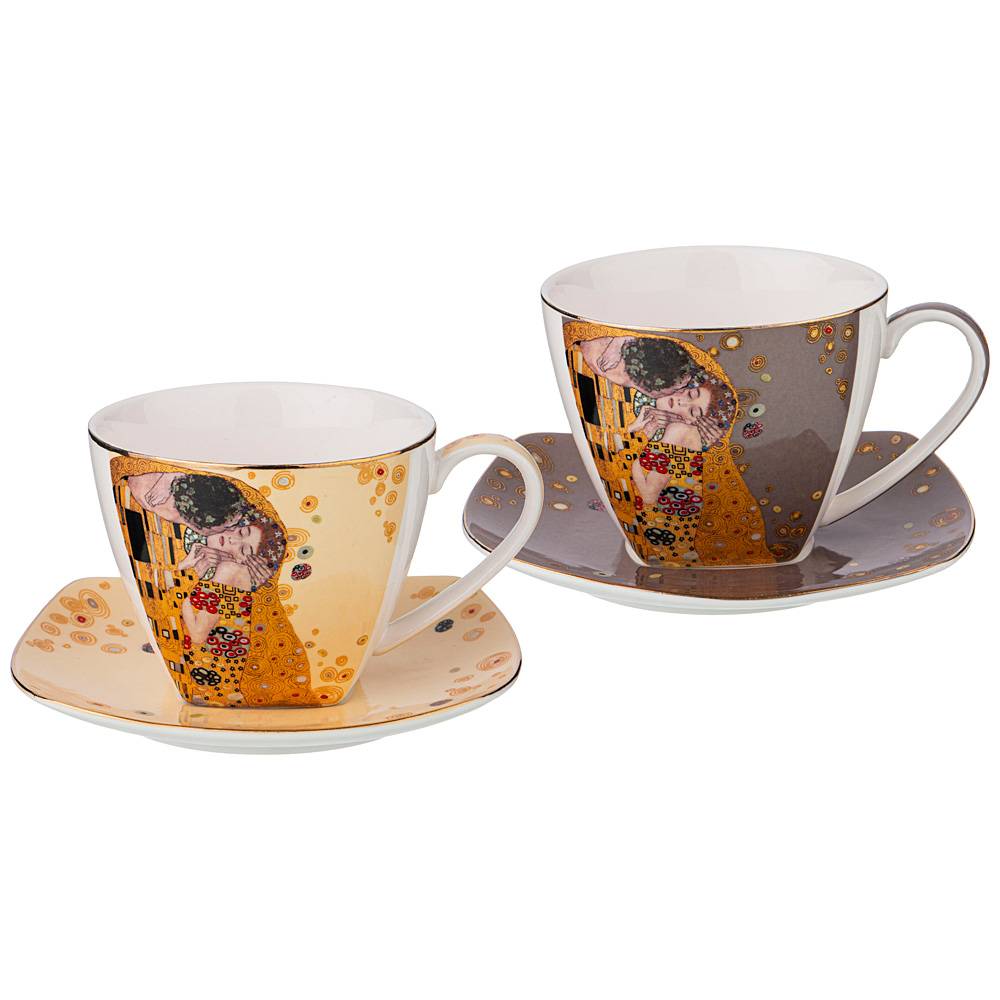 ЧАЙНЫЙ НАБОР LEFARD "ПОЦЕЛУЙ" (Г. КЛИМТ) НА 2ПЕР.4ПР.250 МЛ, КРЕМОВЫЙ, СЕРЫЙ (КОР=12НАБ.)