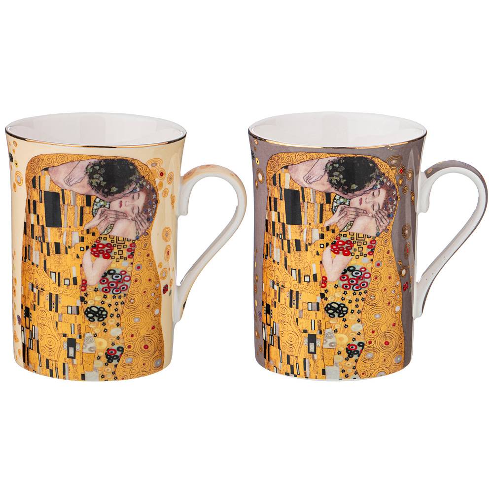 НАБОР КРУЖЕК LEFARD "ПОЦЕЛУЙ" (Г. КЛИМТ) 2 ШТ. 300 МЛ, КРЕМОВАЯ, СЕРАЯ (КОР=24НАБ.)
