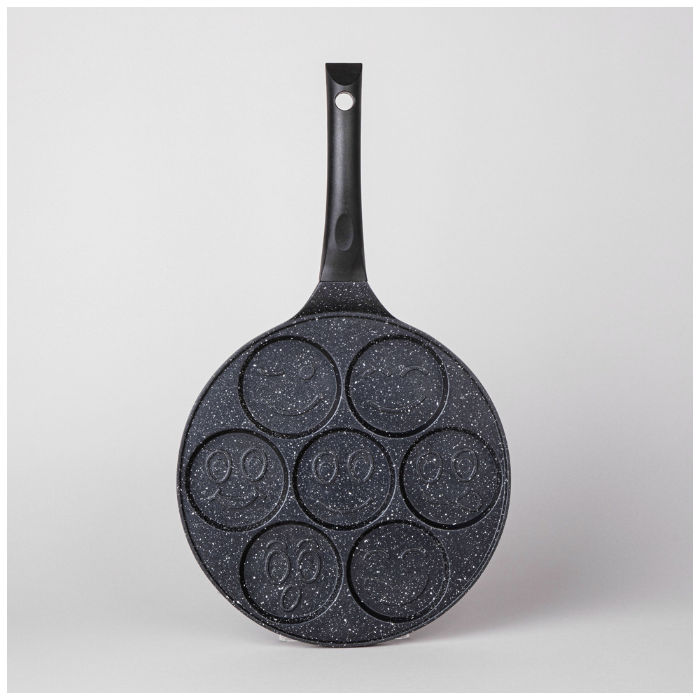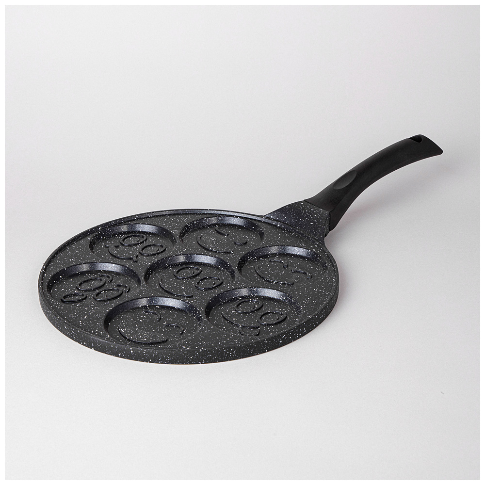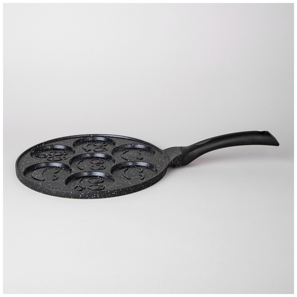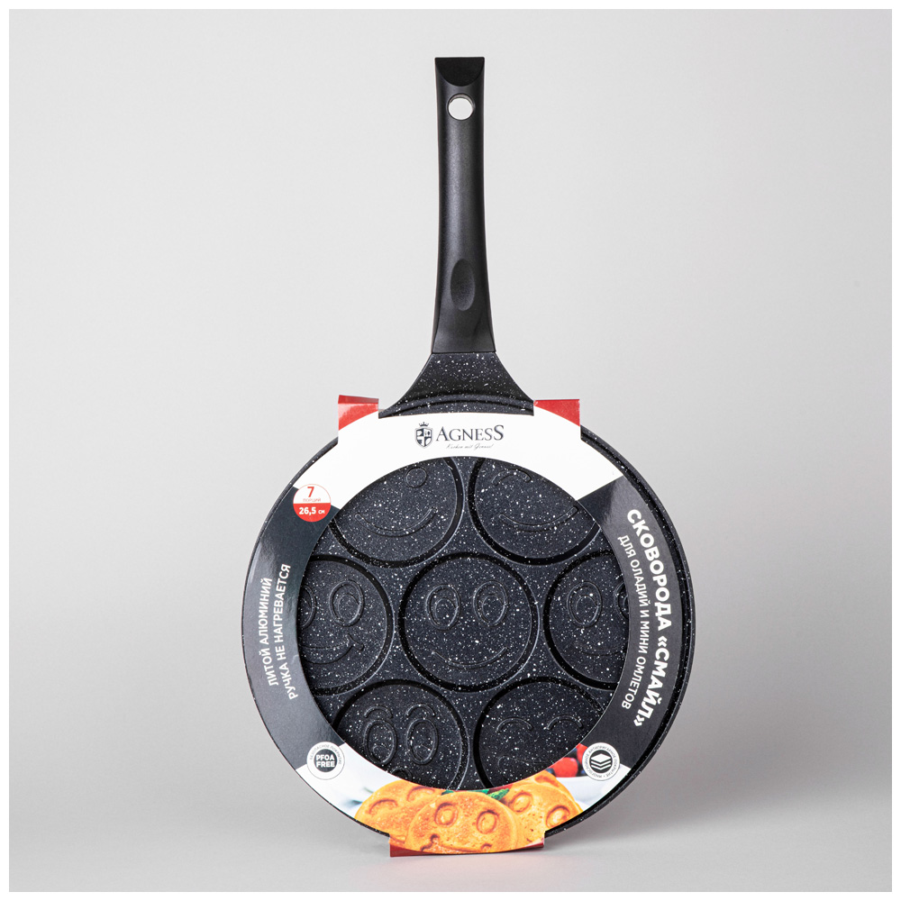 Сковороды AGNESS серии "СМАЙЛ" выполнены из литого алюминия. Такая посуда отличается высокой теплопроводностью и устойчивостью к деформациям. Необычный дизайн сковороды позволит приготовить интересные и веселые оладушки и омлеты.