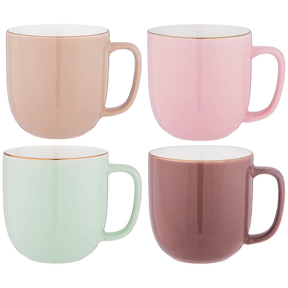 НАБОР ИЗ 4 КРУЖЕК НА ДЕРЕВЯННОЙ ПОДСТАВКЕ LEFARD "BREAK TIME" 310 МЛ ПАСТЕЛЬ (КОР=4НАБ.)